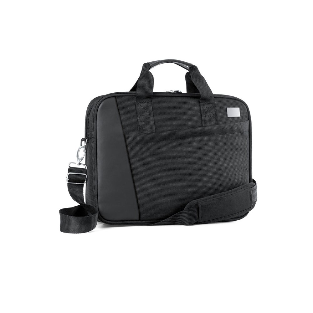 ANGLE LAPTOP. Сумка для ноутбука 15.6'', Черный. Сумка для ноутбука из искусственной кожи и полиэстера 1680D. Отделение с внутренней подкладкой и мягким отделением для ноутбука с диагональю до 15'6''. Передний и задний карманы. Регулируемый плечевой ремень с подкладкой. Ремень крепления к чемодану. Вид нанесения, рекомендуемый поставщиком: гравировка, трансфер, полимерная смола