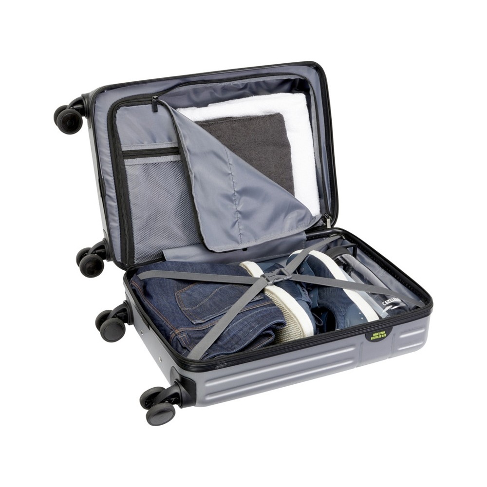 Изготовленный из ударопрочной переработанной пластмассы и облицовки из вторичного ПЭТ, 20-дюймовый чемодан для ручной клади на колесиках Rover отличается не только качеством, но и экологичностью. Он имеет двухтрубную алюминиевую раму, 4 колесика, вращающихся на 360 градусов, встроенный кодовый замок TSA, удобную ручку для переноски и внутренние отделения-органайзеры. Можно брать с собой в качестве ручной клади на рейсах большинства основных авиакомпаний. Данный чемодан на колесах сертифицирован GRS, включая печать, что делает его более экологичным выбором. GRS certified recycled ABS.