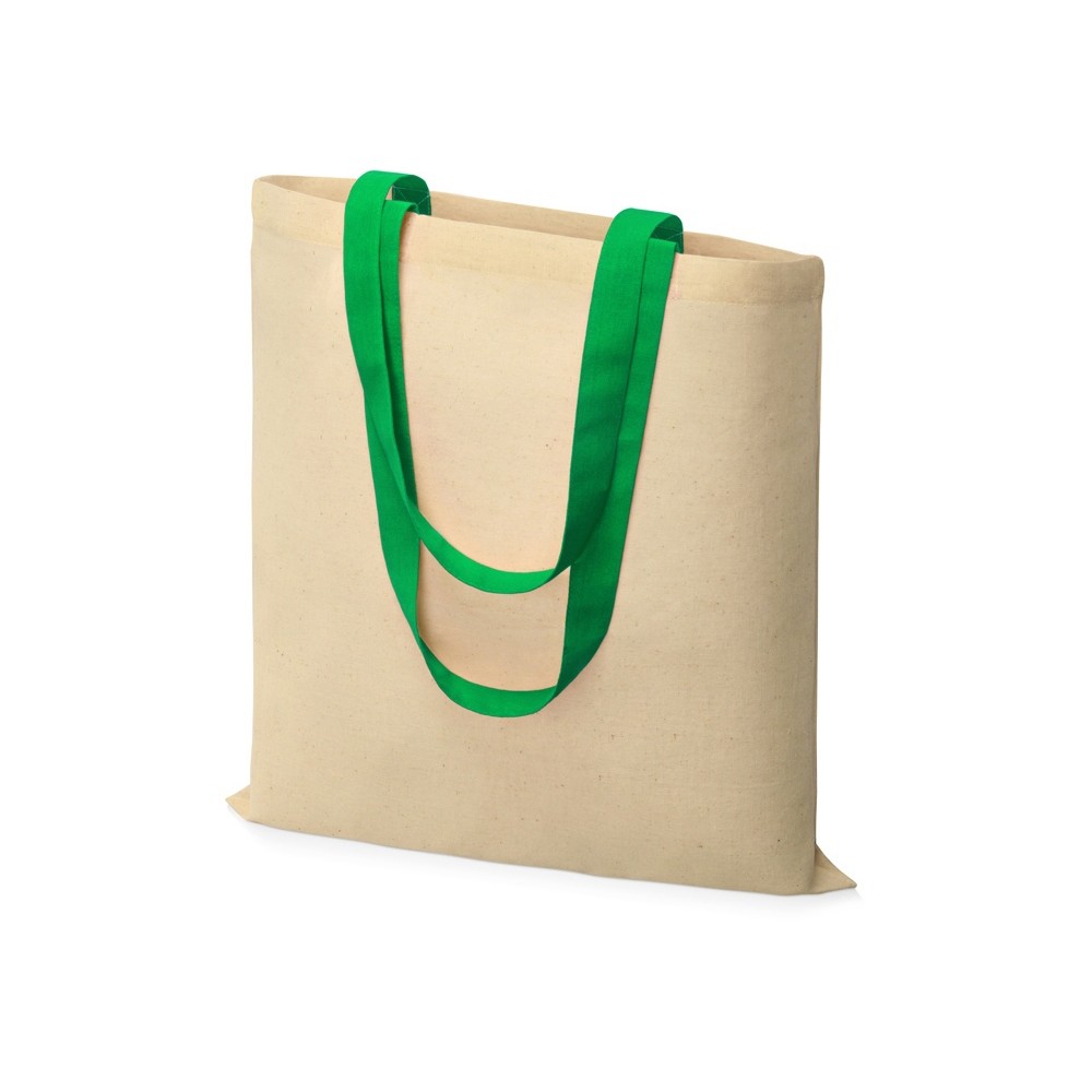 Хлопковая сумка c цветными ручками удобна для покупок благодаря легкости и вместительности. Высота ручек 29 см.