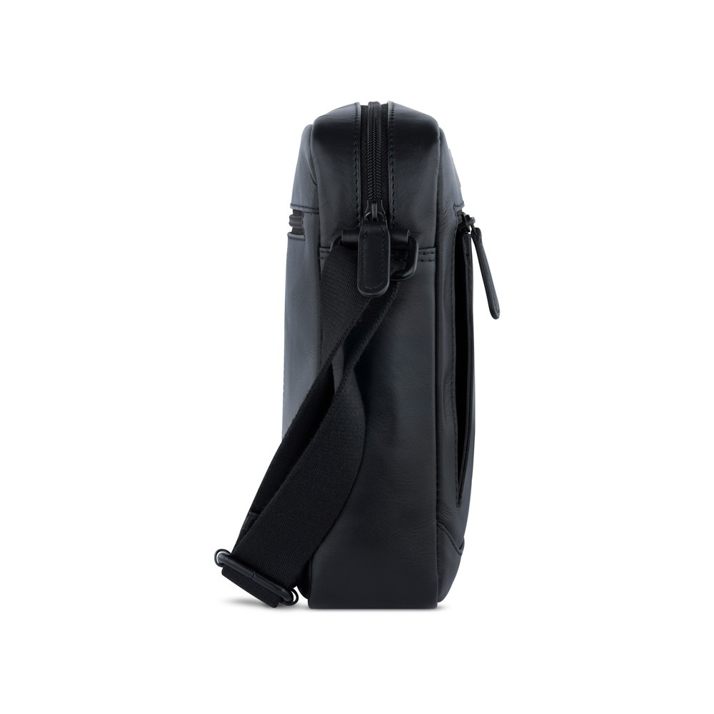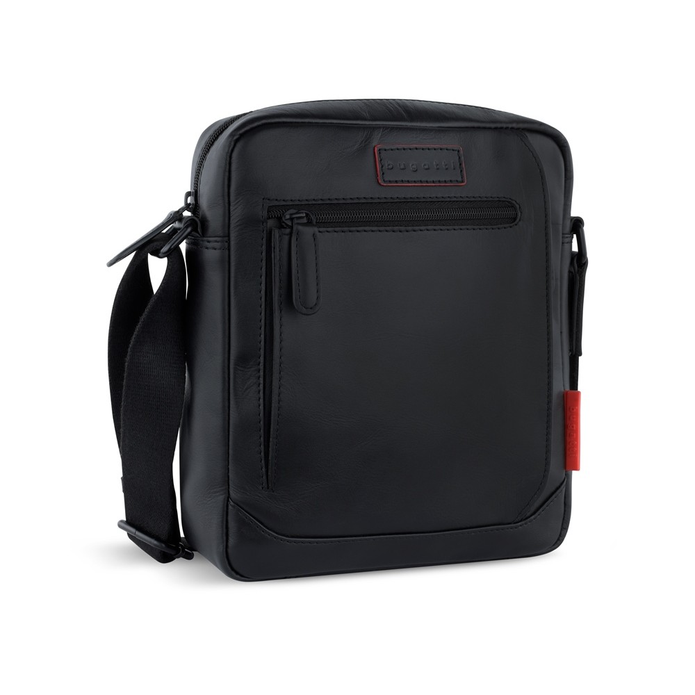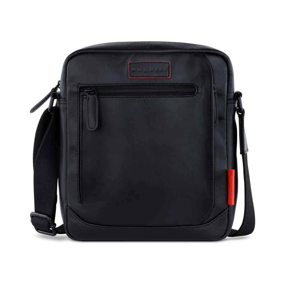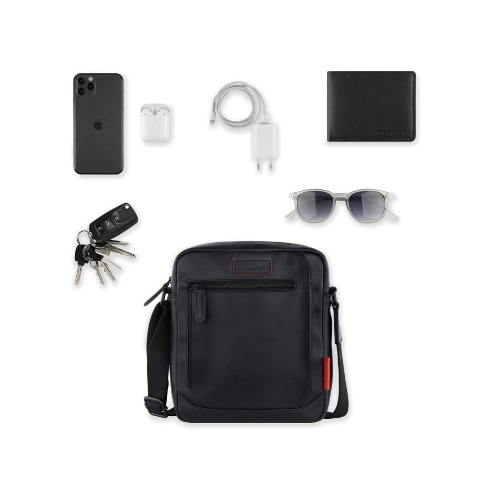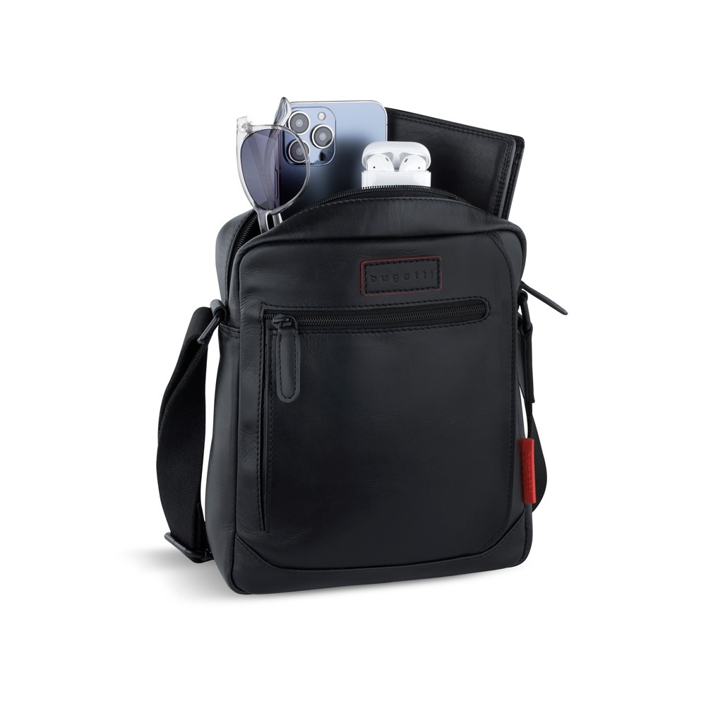 • Сумка наплечная мужская BUGATTI КЛАРК | CLARK, чёрная, воловья кожа/полиэстер, 21х6,5х24 см, 3 л