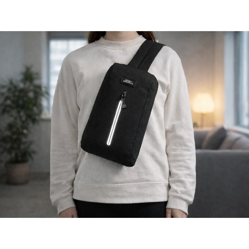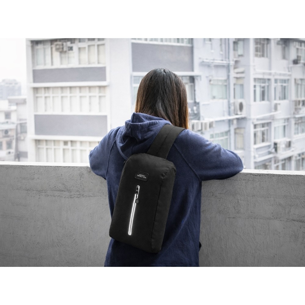 Легкая и удобная сумка-слинг на одно плечо незаменима для передвижения по городу или в поездках. Выполнена из водостойкого и долговечного переработанного полиэстера с покрытием от загрязнения. Складывается во внутренний карман и компактно хранится.