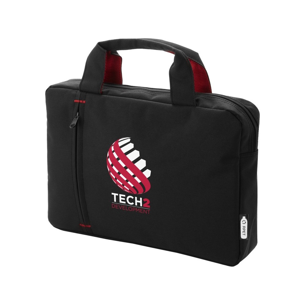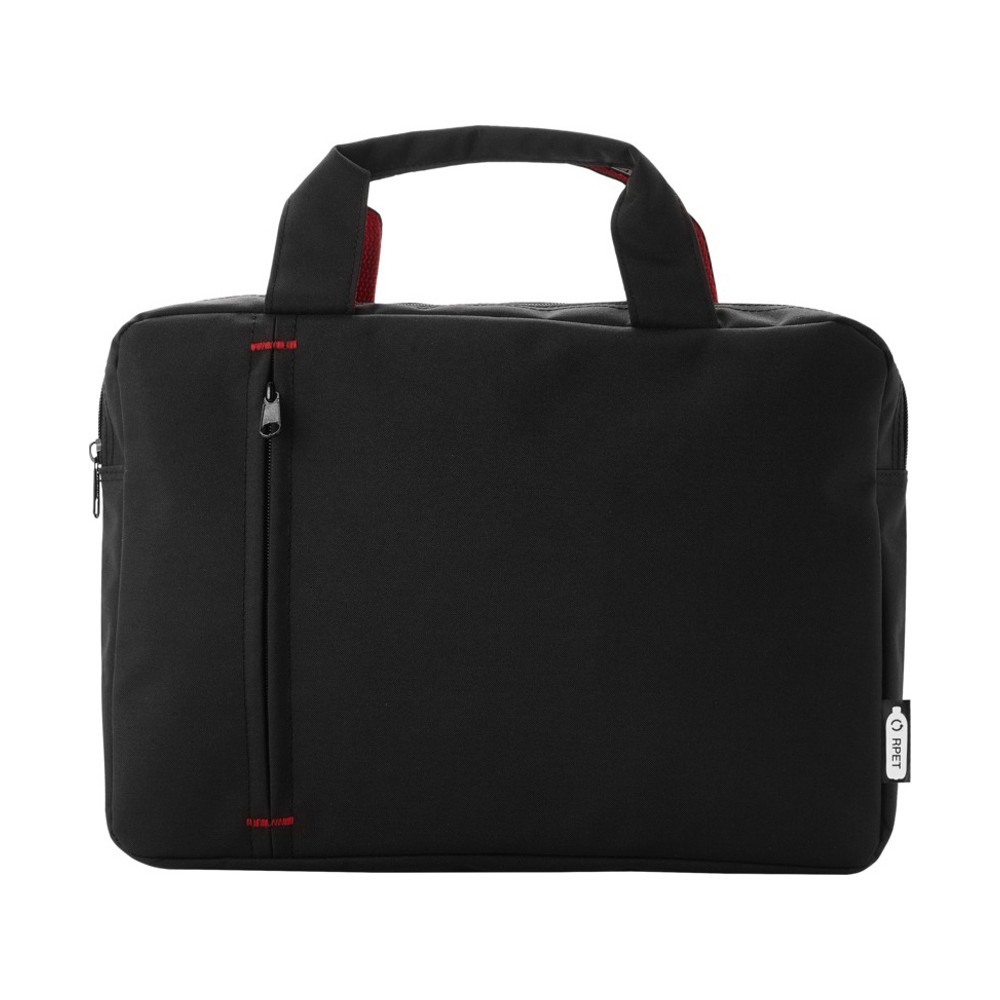 Сумка для конференций из переработанного РЕТ-пластика с основным отделением с застежкой-молнией и передним карманом на молнии, усиленными верхними ручками и модными элементами контрастного цвета.