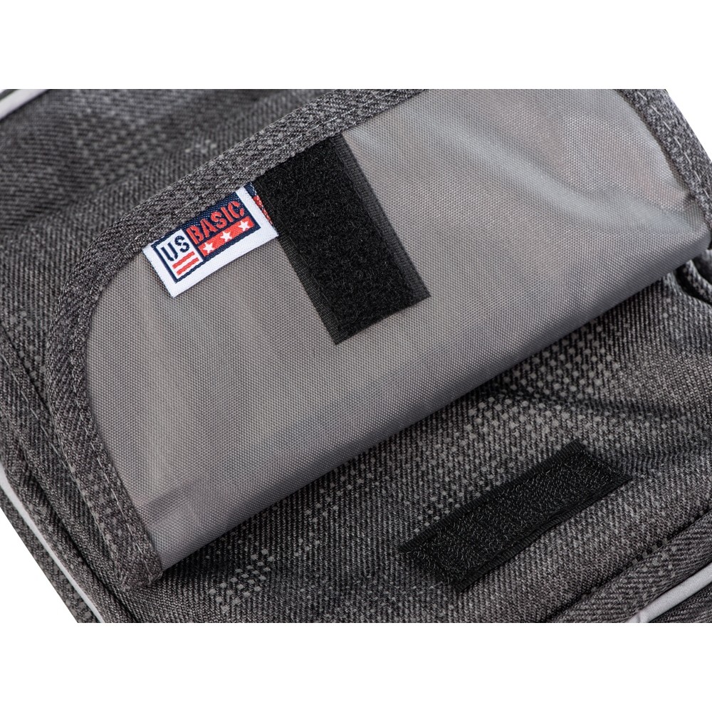 Материал сумки имеет светоотражающее камуфляжное нанесение. Спереди по краю сумки расположена светоотражающая полоса. Все это обеспечивает дополнительную безопасность в темное время суток.