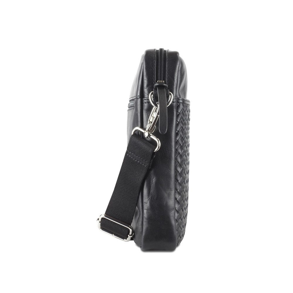 Сумка наплечная мужская BUGATTI КОМЕТА | COMET, чёрная, воловья кожа/полиэстер, 17х4,7х21 см