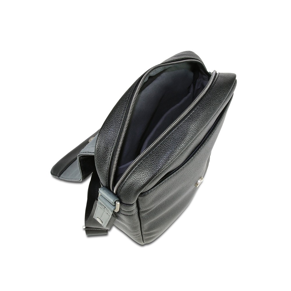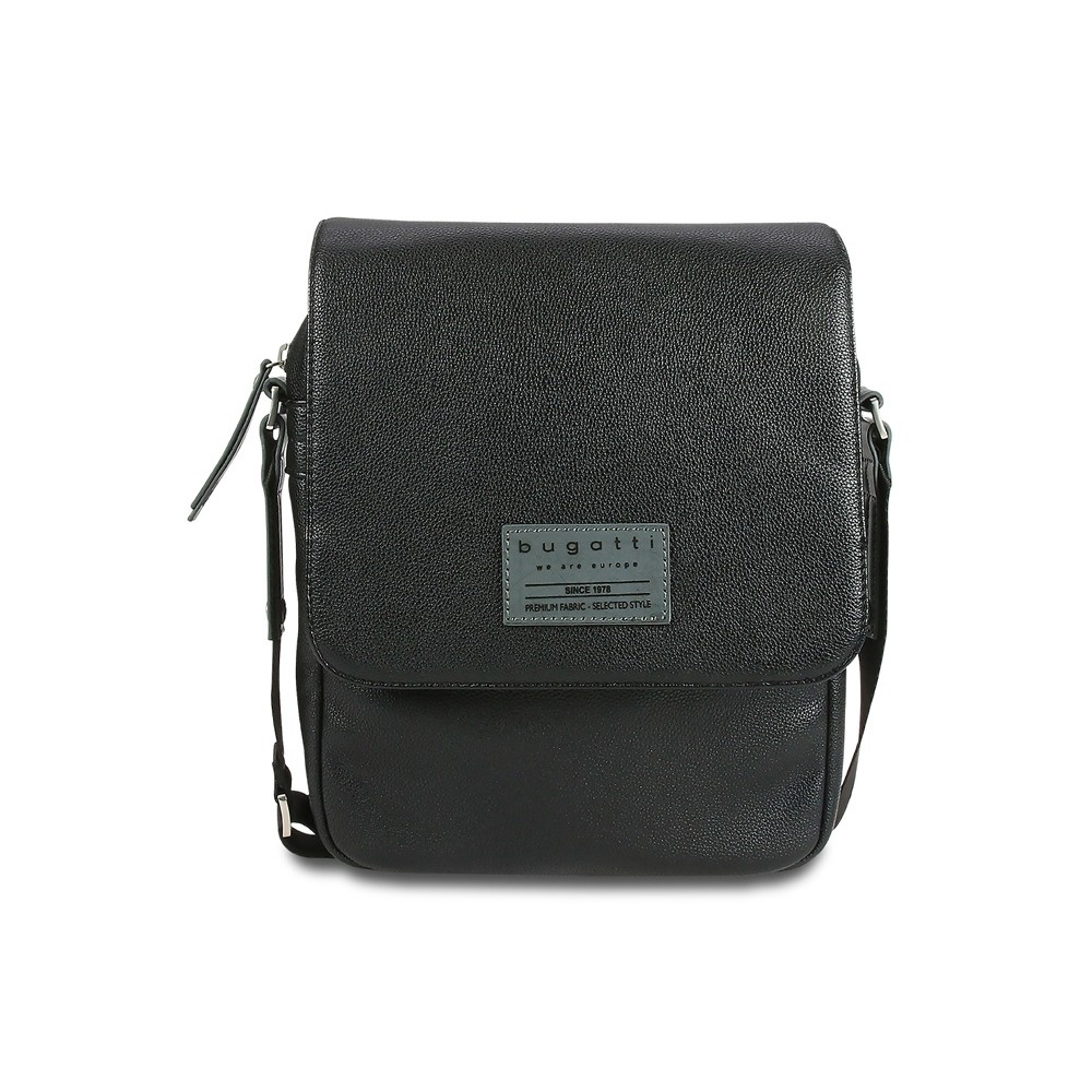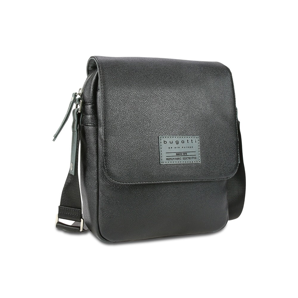 Сумка наплечная мужская BUGATTI КОМЕТА | COMET, чёрная, воловья кожа/полиэстер, 17х4,7х21 см
