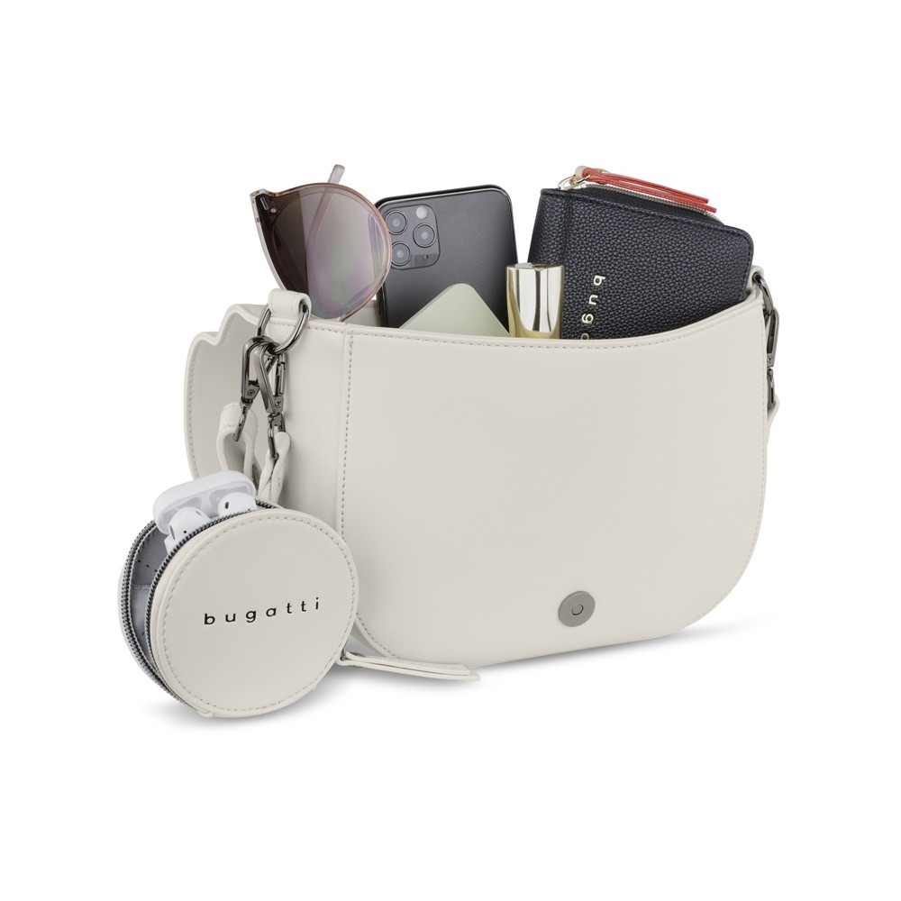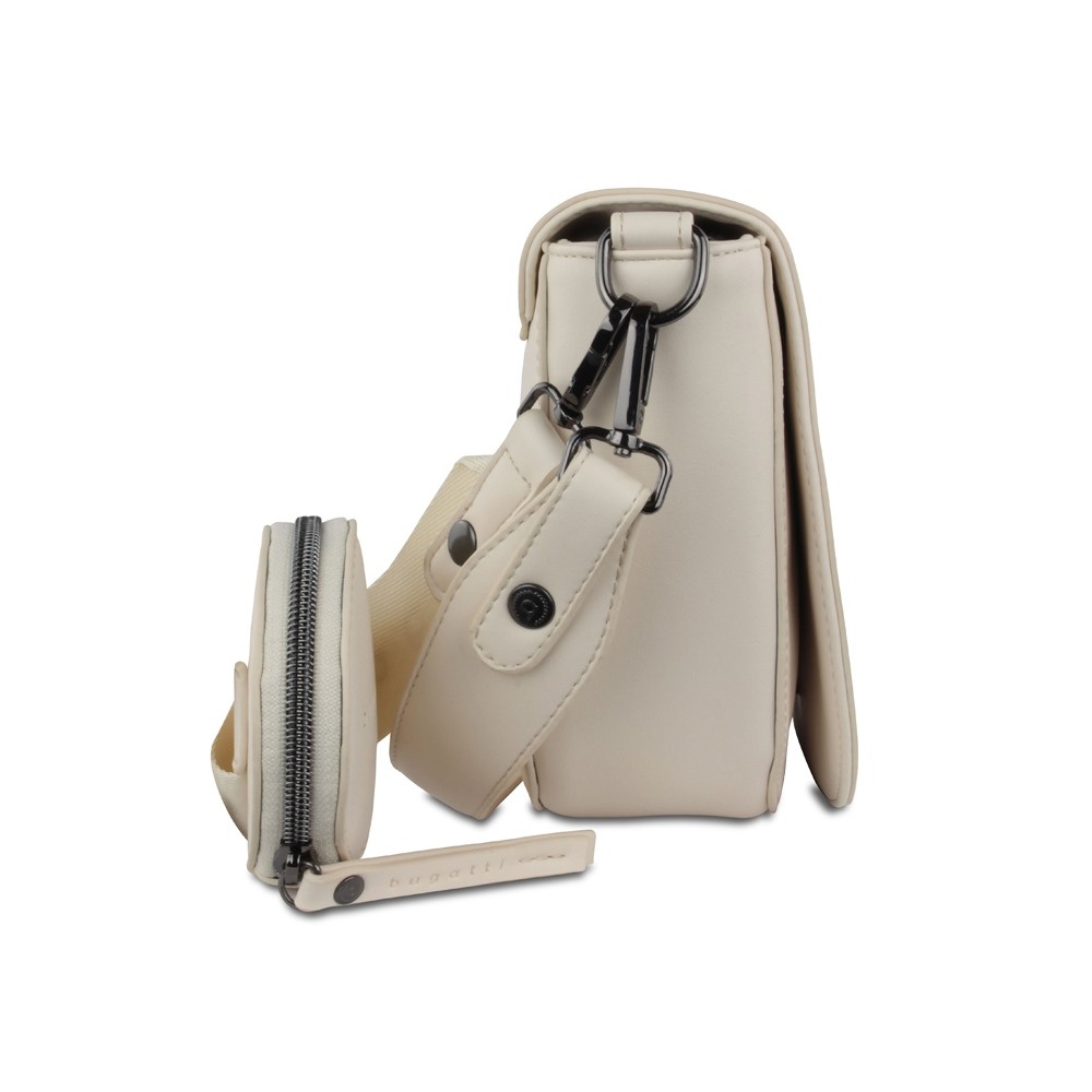 • Сумка наплечная женская BUGATTI АЛМАТА | ALMATA, с кошельком, бежевая, полиуретан, 27х6х18,5 см