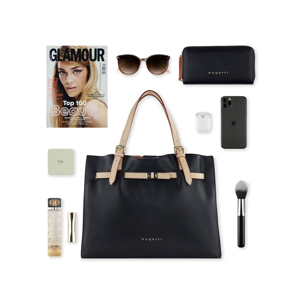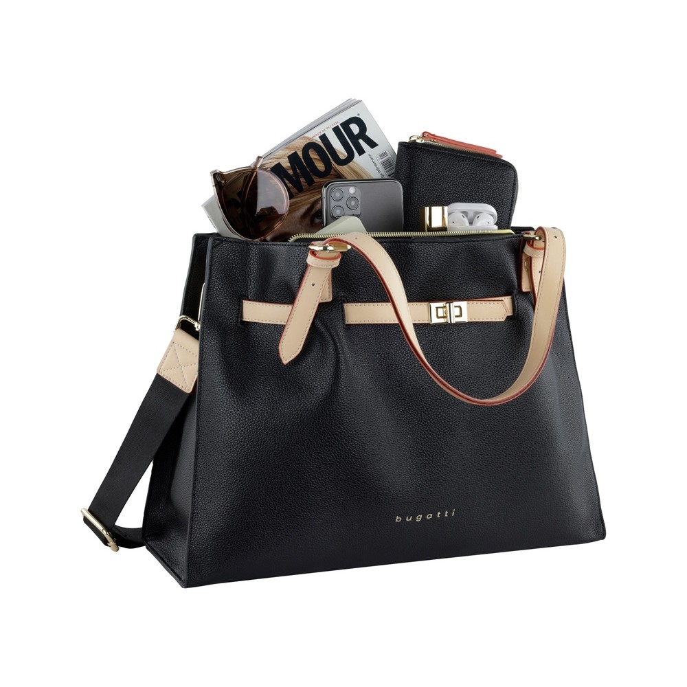 • Сумка наплечная женская BUGATTI ЭЛЛА | ELLA, черная, полиуретан, 37,5х13,5х28 см