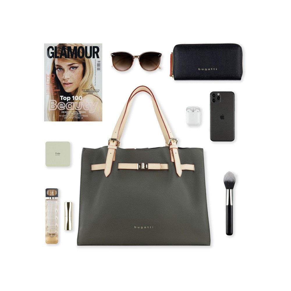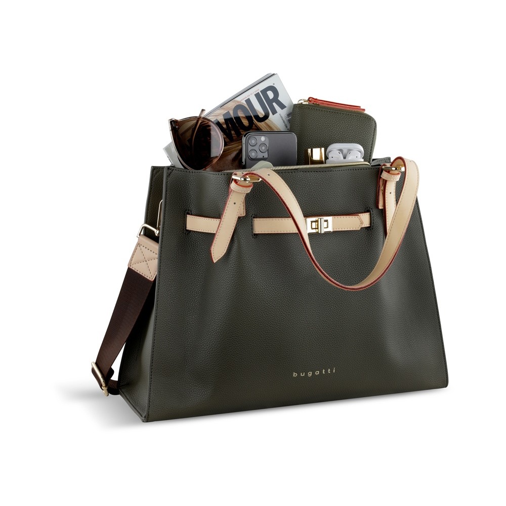 • Сумка наплечная женская BUGATTI ЭЛЛА | ELLA, оливковая, полиуретан, 37,5х13,5х28 см