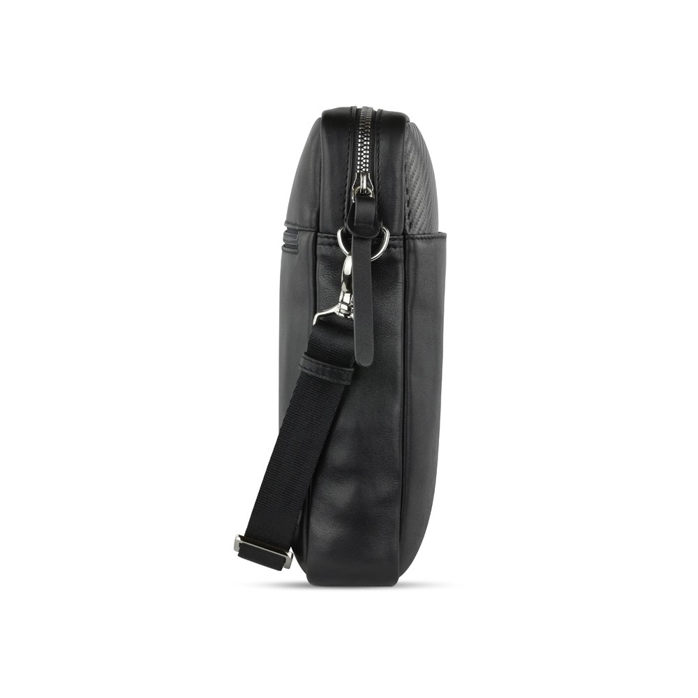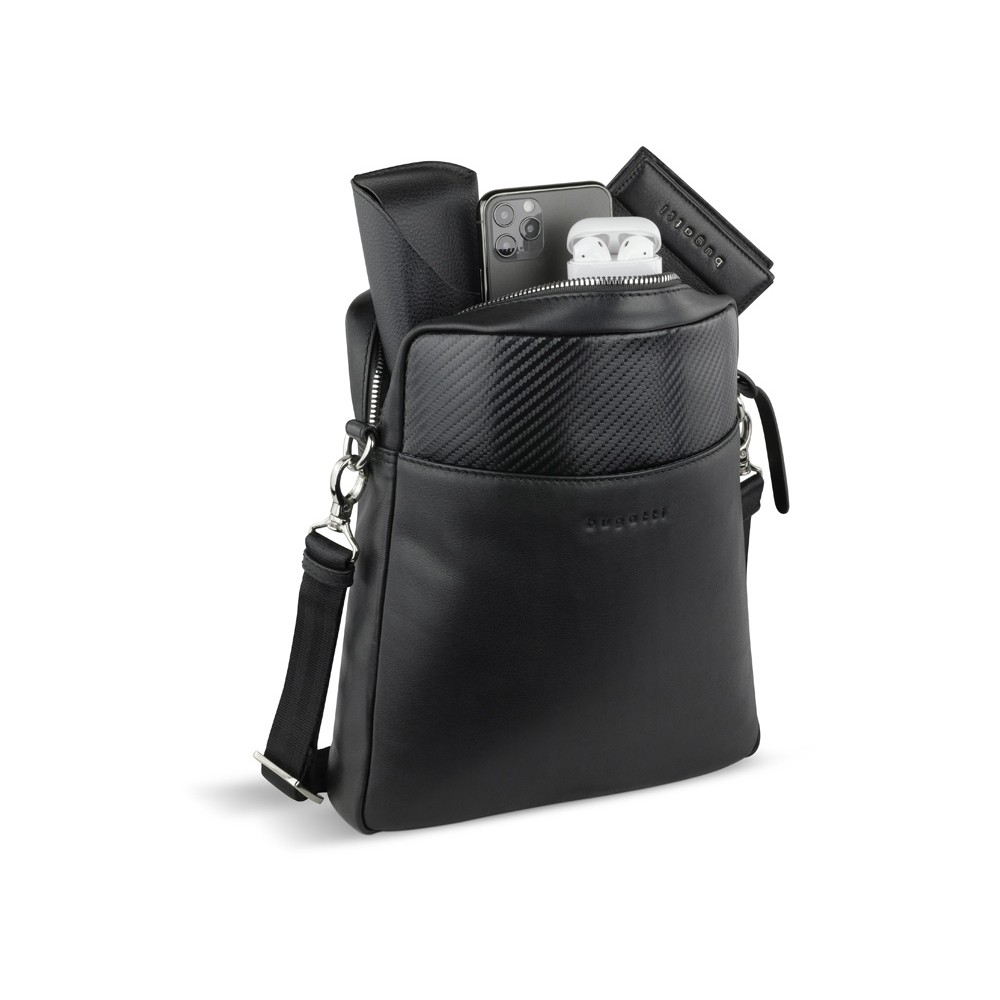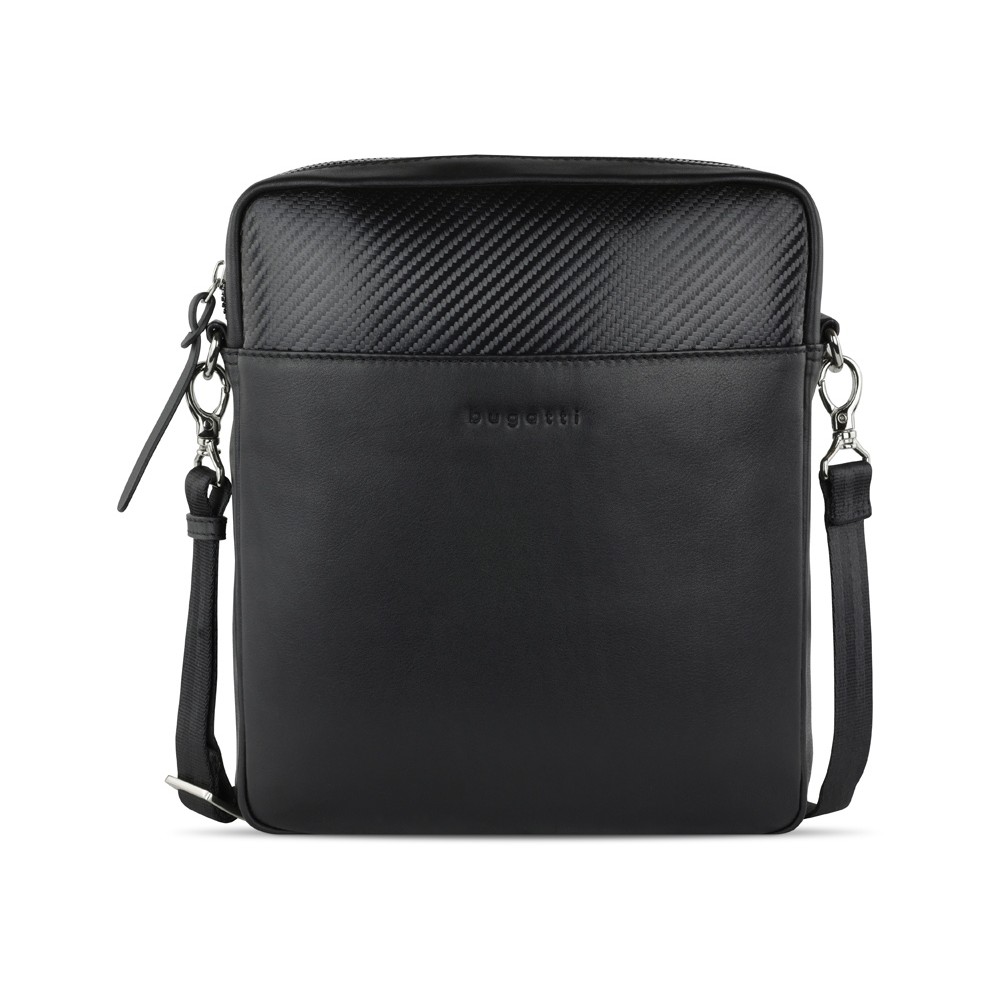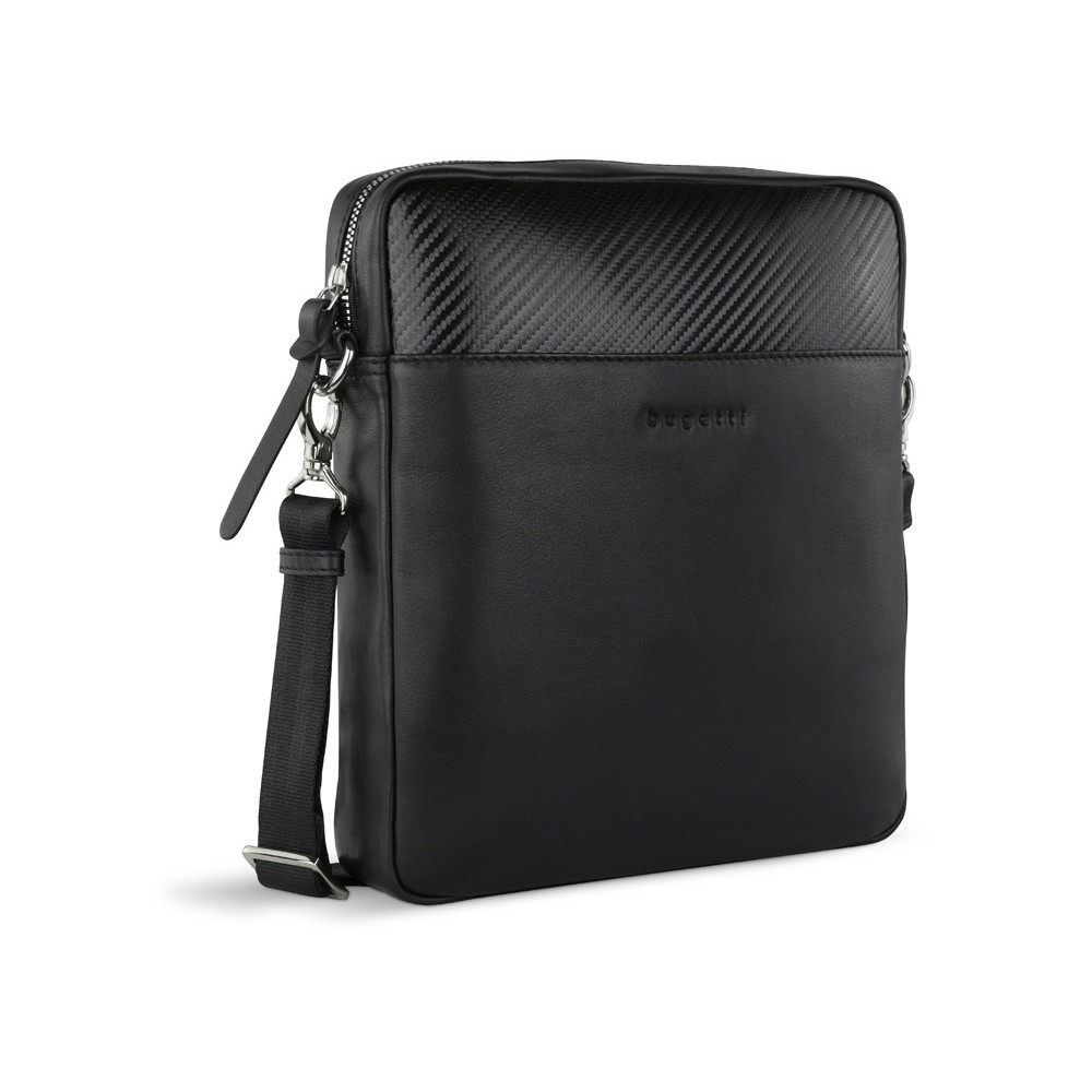 • Сумка наплечная мужская BUGATTI КОМЕТА | COMET, чёрная, воловья кожа/полиэстер, 23,5х5х26 см