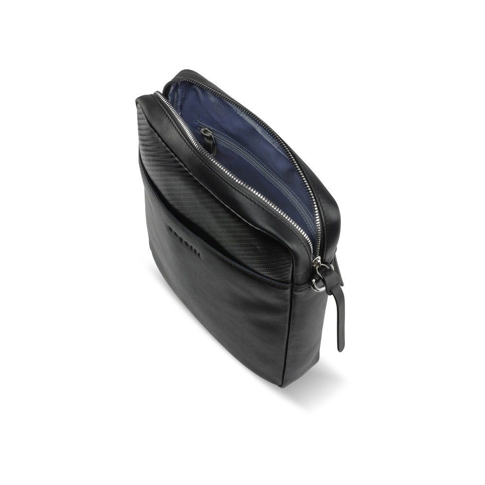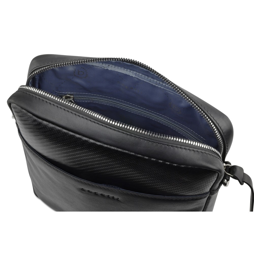 Сумка наплечная мужская BUGATTI КОМЕТА | COMET, чёрная, воловья кожа/полиэстер, 23,5х5х26 см