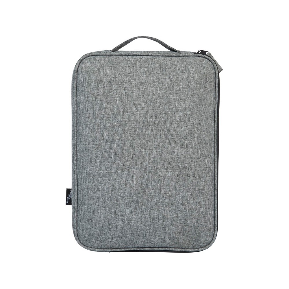 Двухцветный чехол для ноутбука снаружи изготовлен из 100% переработанных материалов по стандарту GRS и имеет компактное защищенное отделение, которое подходит для большинства 14-дюймовых ноутбуков. Он также имеет передний карман на молнии для документов, блокнотов и небольших аксессуаров, а также ручку для переноски, что идеально подходит для ежедневных поездок.