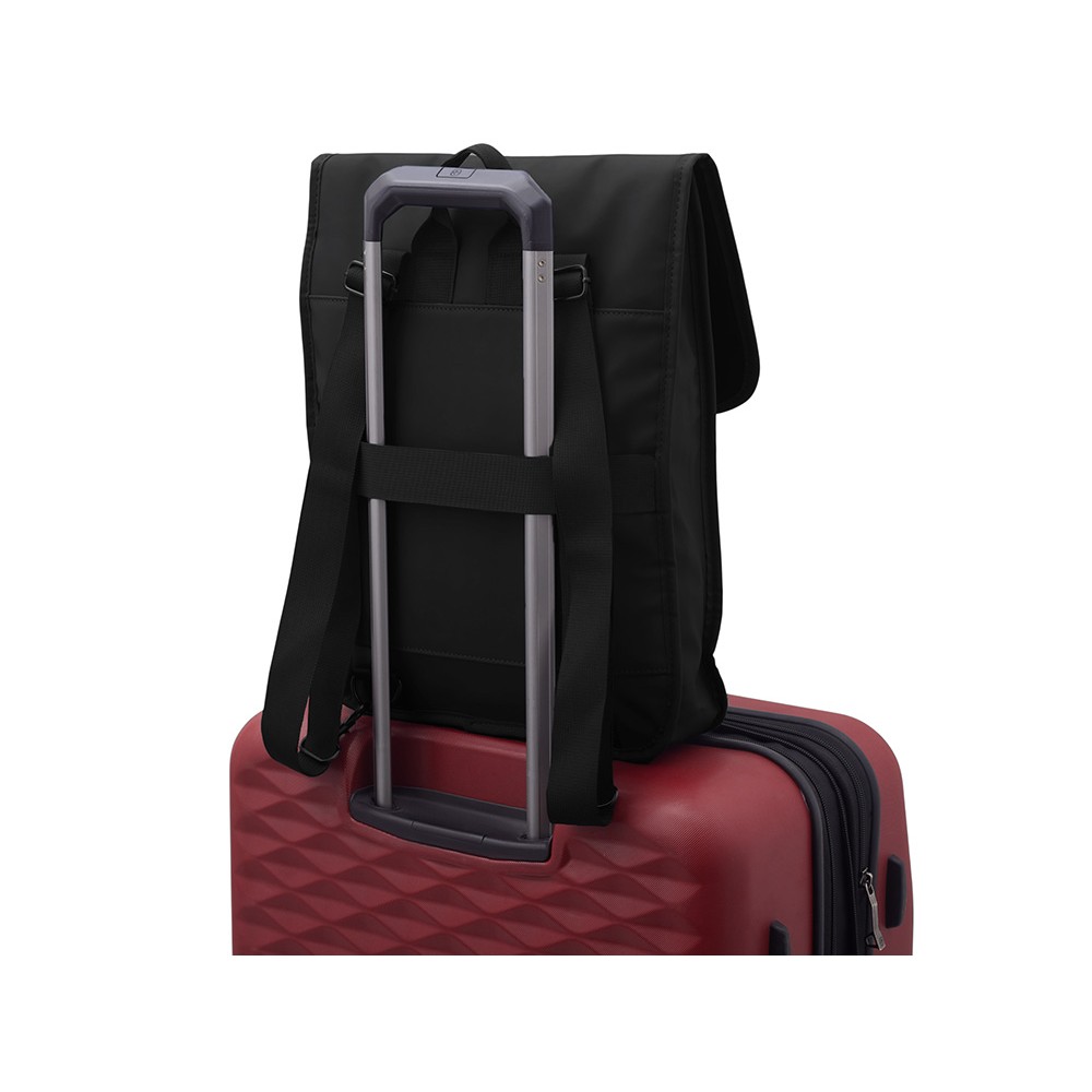 Этот бизнес-рюкзак из приятной на ощупь ПУ кожи удобен для передвижения с гаджетами по городу. Рюкзак оснащен всем необходимым для комфортного использования: застежка-карабин с регулировкой наполняемости рюкзака, регулируемые по длине лямки, карман для ноутбука внутри, ремень для крепления на ручку чемодана снаружи.