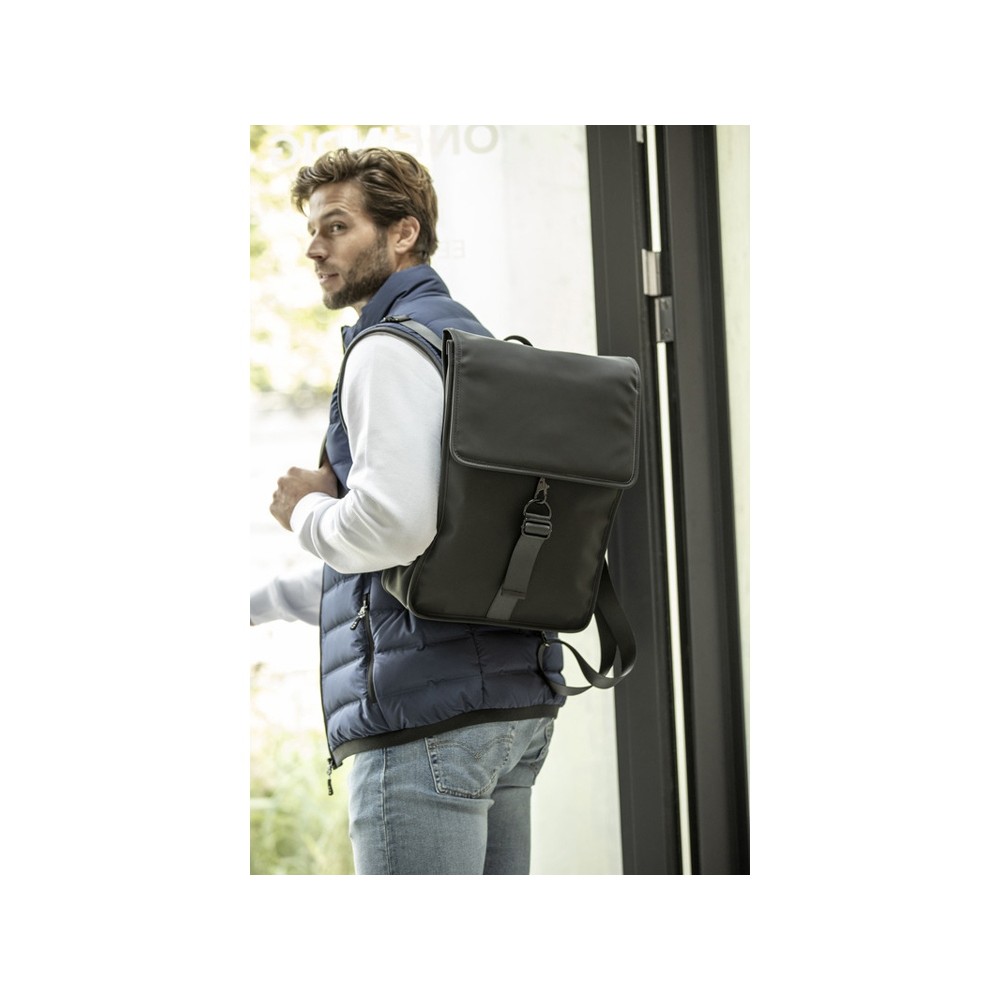 Рюкзак Turner изготовлен из очень прочных и экологически чистых материалов. Внешняя часть изготовлена из 51% переработанного полимерного пластика, сертифицированного по стандарту GRS, а подкладка — из 100% переработанного PET-пластика, сертифицированного по стандарту GRS. Рюкзак имеет специальное мягкое отделение для ноутбука с диагональю 15,6 дюйма, ремешок внутри для хранения бутылки с водой и карман на молнии для мелочей. Основное отделение можно открывать и закрывать с помощью застежки-пряжки. Этот рюкзак рассчитан на длительный срок службы, а благодаря классическому дизайну и прочным материалам он станет вашим любимым.