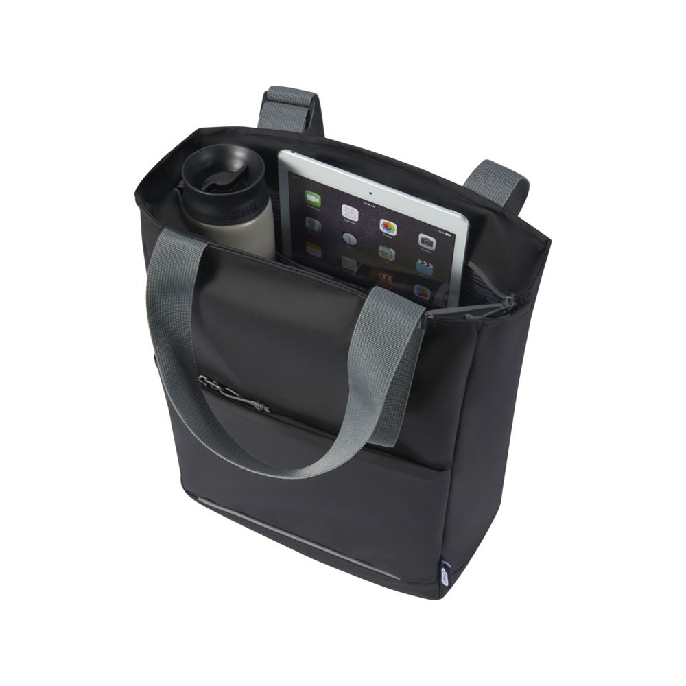 Водонепроницаемая эко-сумка для ноутбука, изготовленная из переработанных материалов согласно стандарту GRS, включая молнии. Имеет специальное отделение для планшета, отделение для ноутбука с диагональю экрана 14 дюймов, несколько карманов для хранения разных предметов, передний карман с органайзером, регулируемые ручки длиной 35 см и ремешок для багажа. Из переработанных материалов, сертифицированных по стандарту GRS, изготовлены основная ткань, подкладка, лямки и застежки-молнии. Емкость: 14 литров. Не содержит ПВХ.