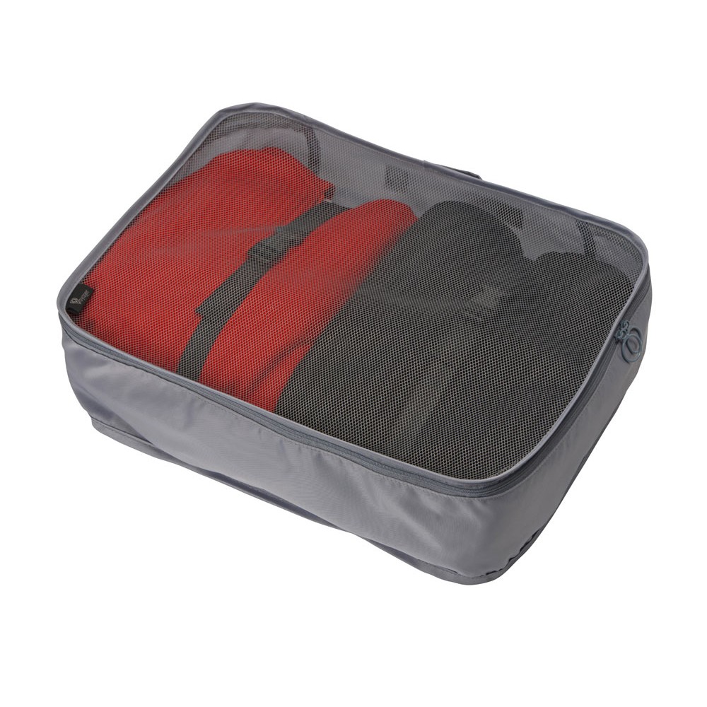 Набор чехлов для одежды от бренда Voyager, выполненный из прочного качественного полиэстера 290D, организует ваши вещи в чемодане во время путешествия и поможет разместить их комфортно в шкафу. В отличие от пакетов чехлы многоразовые, что наверняка понравится защитникам природы, их легко стирать, сушить и хранить. Набор состоит из восьми чехлов, упакованных в один большой с сетчатой стенкой. Этот чехол оборудован ручкой для переноски и кнопками на задней стенке, которые позволяют компактно сложить изделие вдвое в зафиксированном положении для хранения.