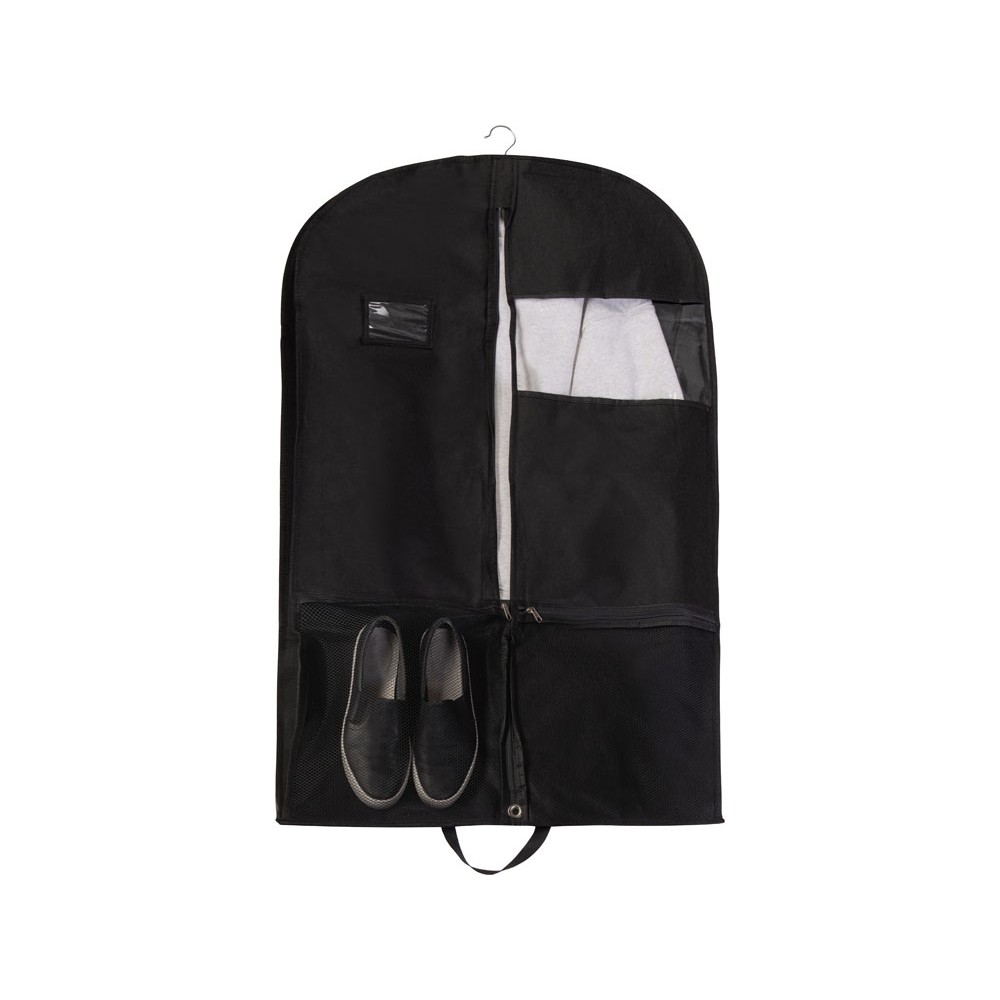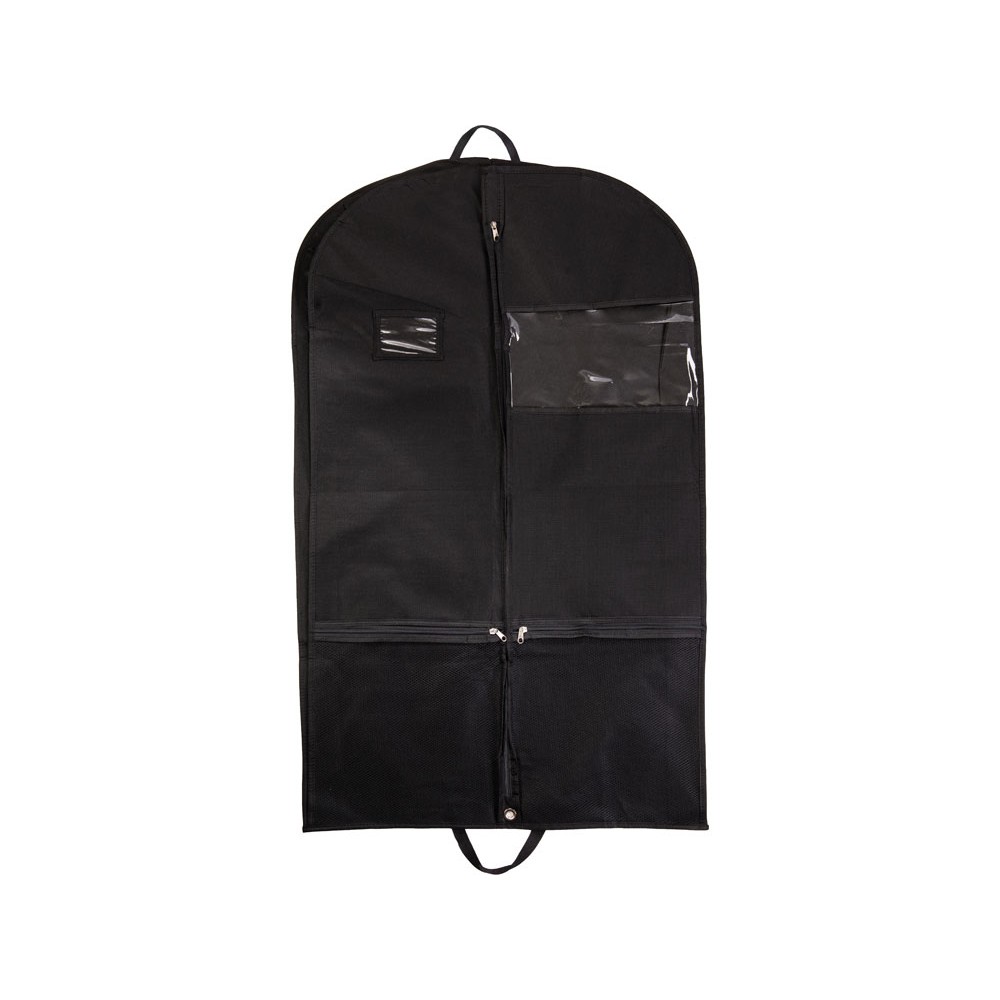 Дорожный чехол из нетканого материала для одежды, который помогает перевозить одежду чистой и без складок. В сложенном виде напоминает форматом портфель, легко переносится с места на место благодаря удобным ручкам. Чехол имеет отверстие для крючка вешалки, на которую вы можете повесить одежду перед тем, как поместить ее внутрь.