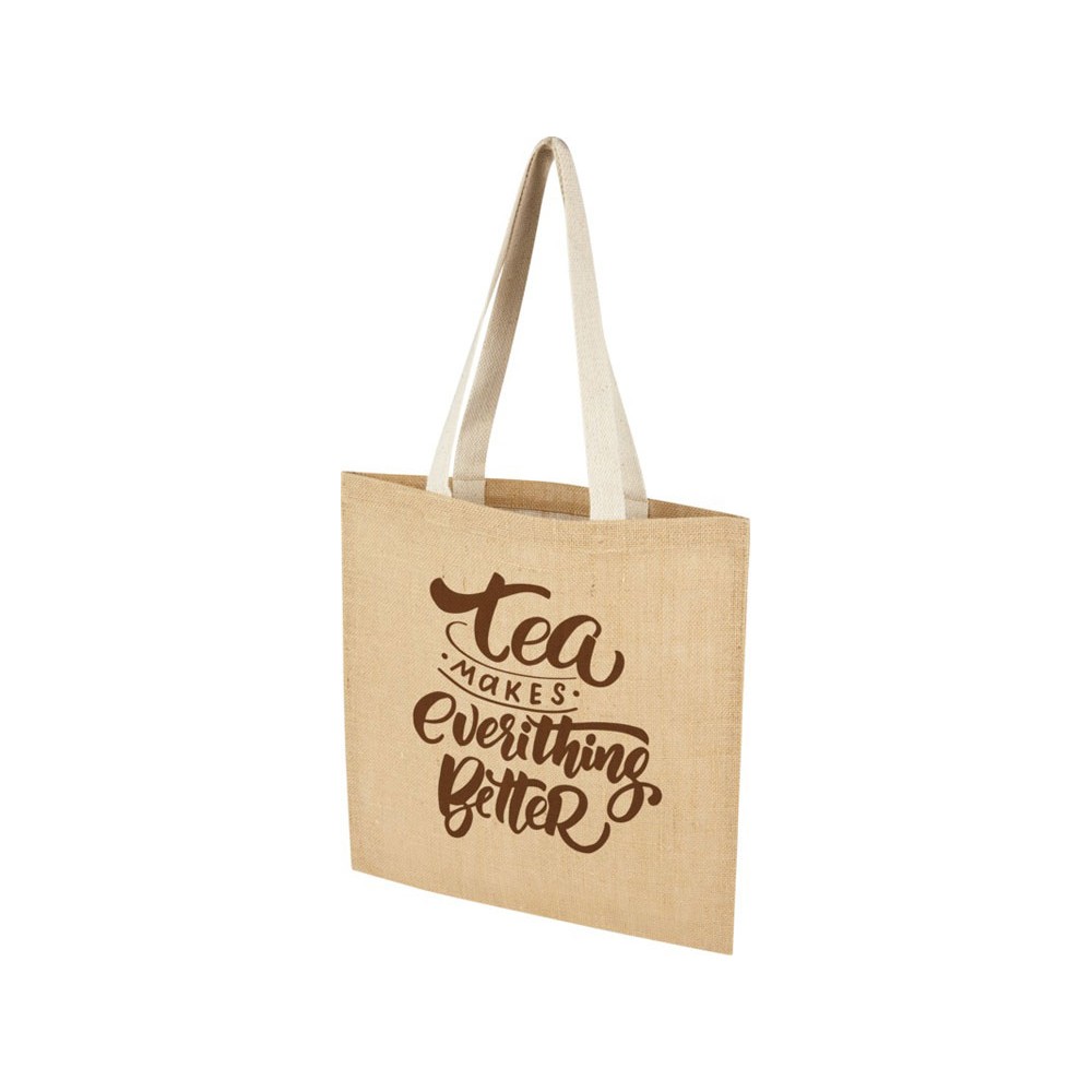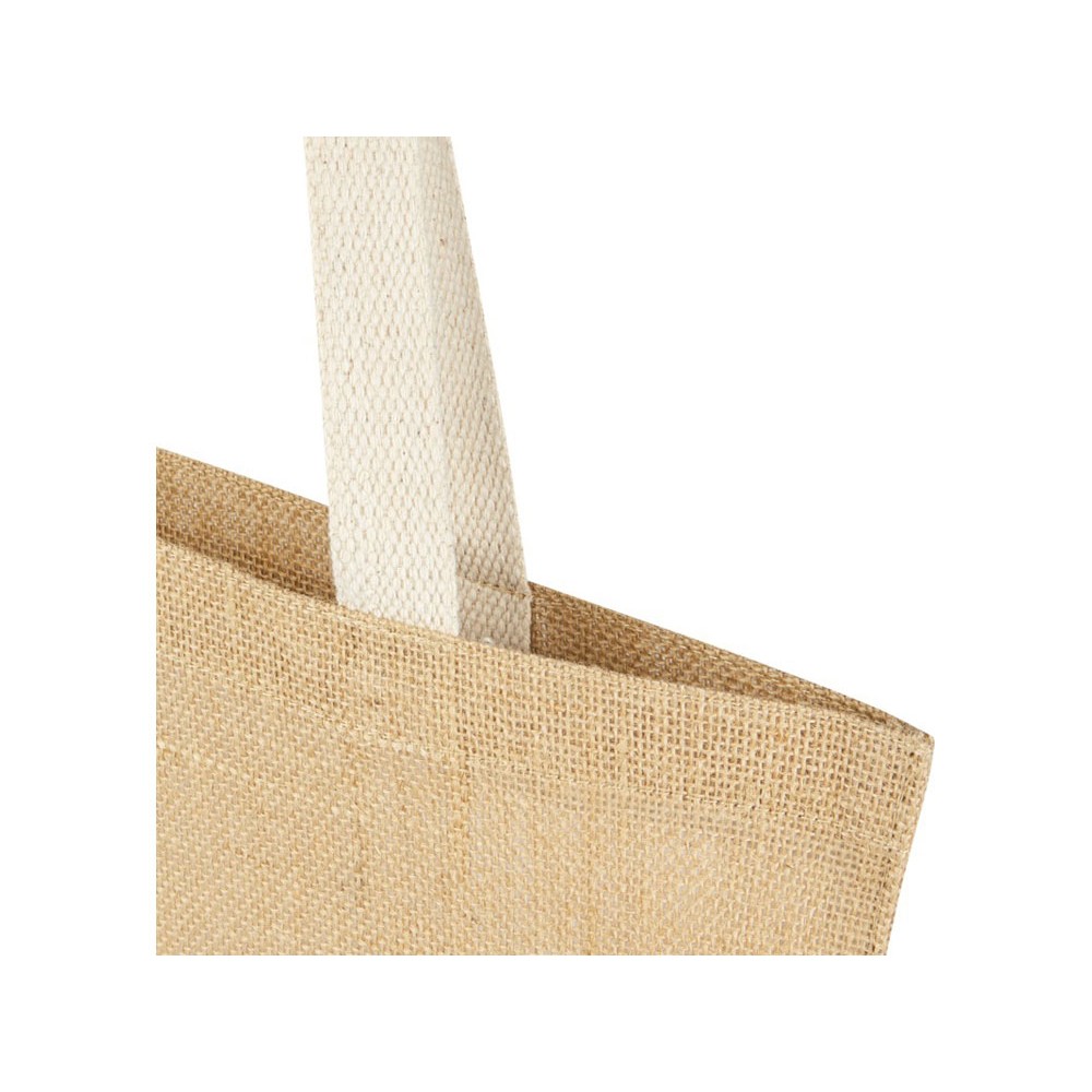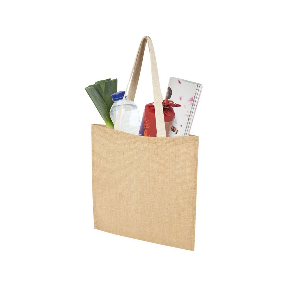 Компактная, но вместительная эко-сумка Juta объемом 7 л позволяет переносить предметы первой необходимости, что делает ее идеальным выбором для покупок, работы или путешествий. Изготовлена из прочного и износостойкого ламинированного джута плотностью 300 г/м². Длинные тканые ручки из хлопка (30 x 2,5 см) обеспечивают удобное удерживание при длительном ношении эко-сумки. Сделано в Индии и сертифицировано OEKO-Tex.