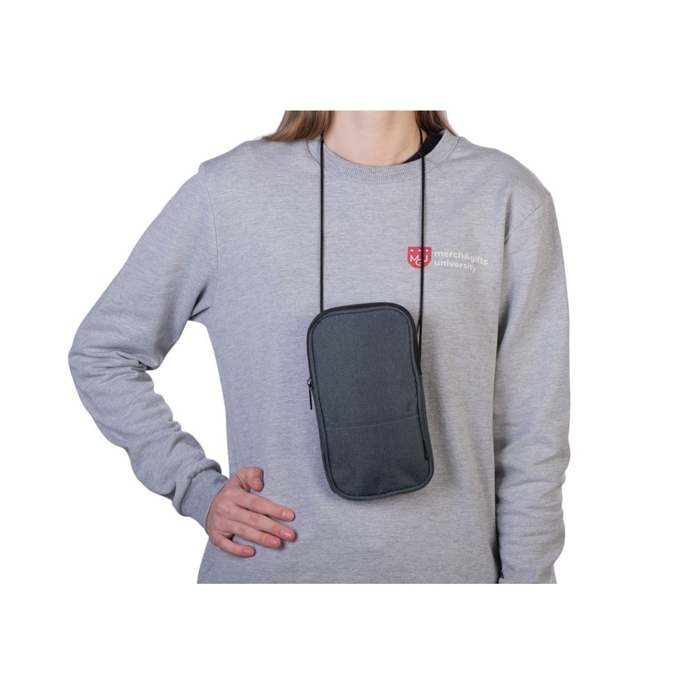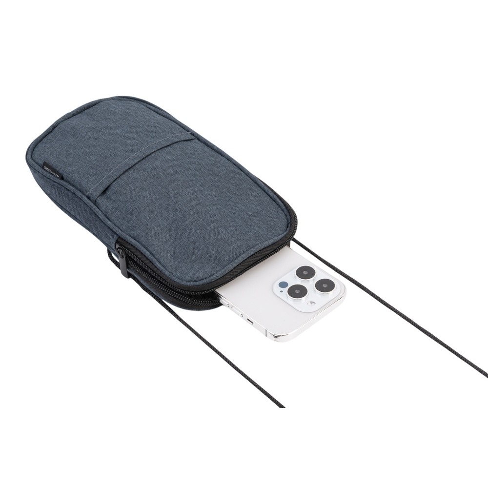 Мобильный чехол из полиэстера RPET. Основное отделение с застежкой-молнией. Внешний карман. В комплект входит шнурок для переноски. Длина шнурка 122 см.
