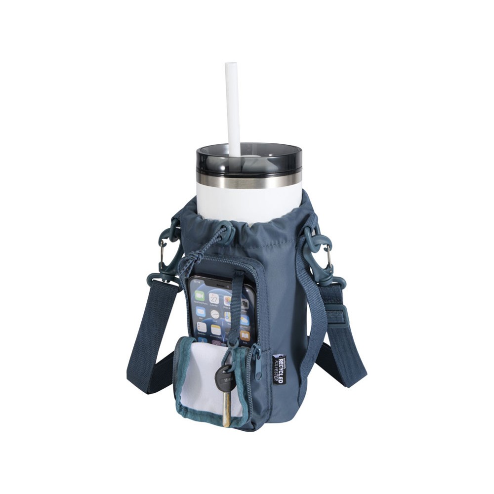 Дорожная сумка для бутылки Трип Эви из переработанных материалов— это практичное и легкое решение для поддержания водного баланса в пути. Изготовленная из полиэстера саржевого переплетения плотностью 290D с трикотажной основой и подкладкой из материала RPET плотностью 210D/PU, она отличается прочностью и продуманным дизайном. Основное отделение застегивается на шнурок и подходит как для больших бутылок с ручками, так и для бутылок меньшего размера, а заднее отверстие обеспечивает легкий доступ. Передний карман вмещает необходимые вещи, такие как телефон, а также оснащен внутренним выдвижным карманом и лентой для ключей. Регулируемый ремень и боковая ручка обеспечивают гибкие возможности переноски. Каждая сумка также поставляется с индикатором Aware™. Эта инновационная функция позволяет пользователям отслеживать происхождение и путь своего товара с помощью QR-кода, повышая прозрачность цепочки поставок и способствуя более прочной связи между продуктом и процессом его производства. Объем: 2 литра.