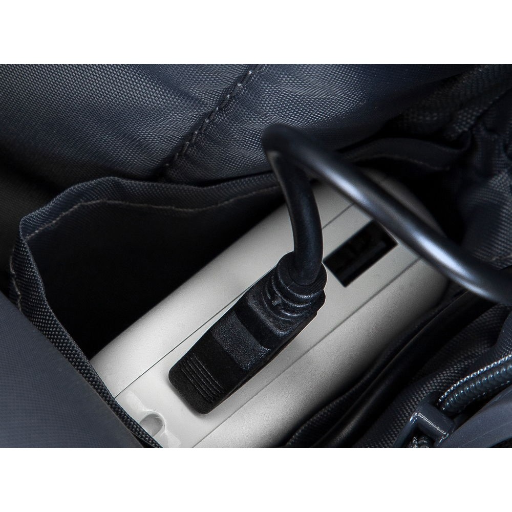 • На боковой стороне рюкзака имеется USB-порт для подключения портативного внешнего аккумулятора к смартфону.