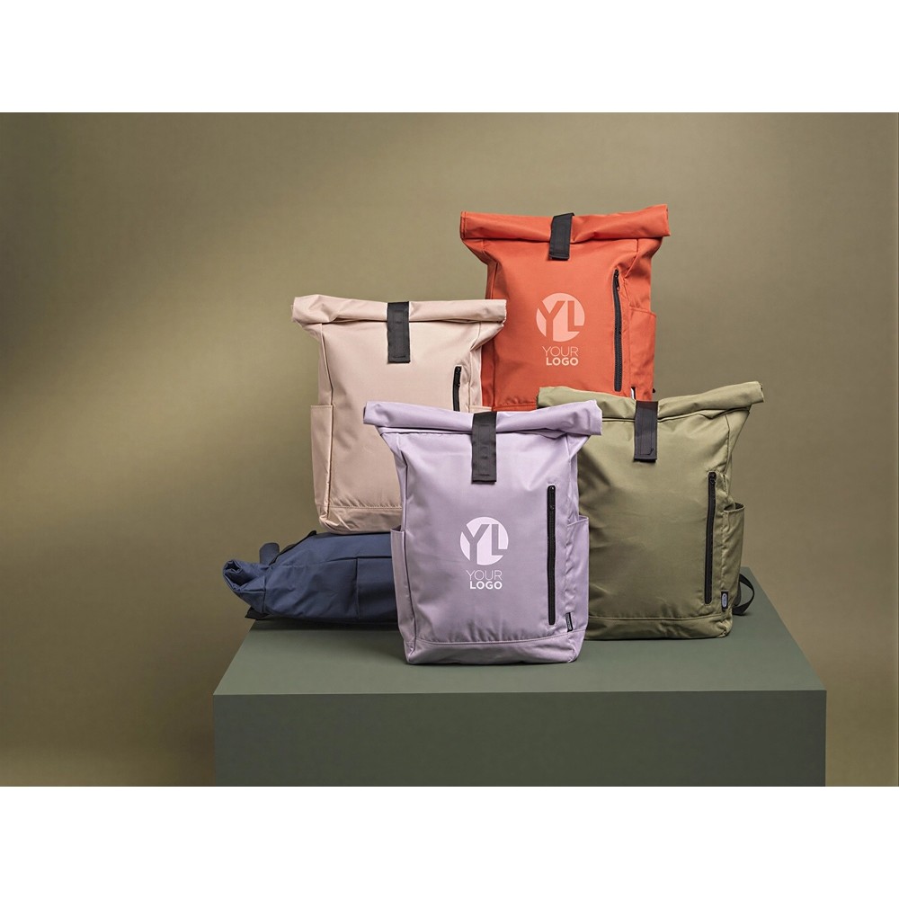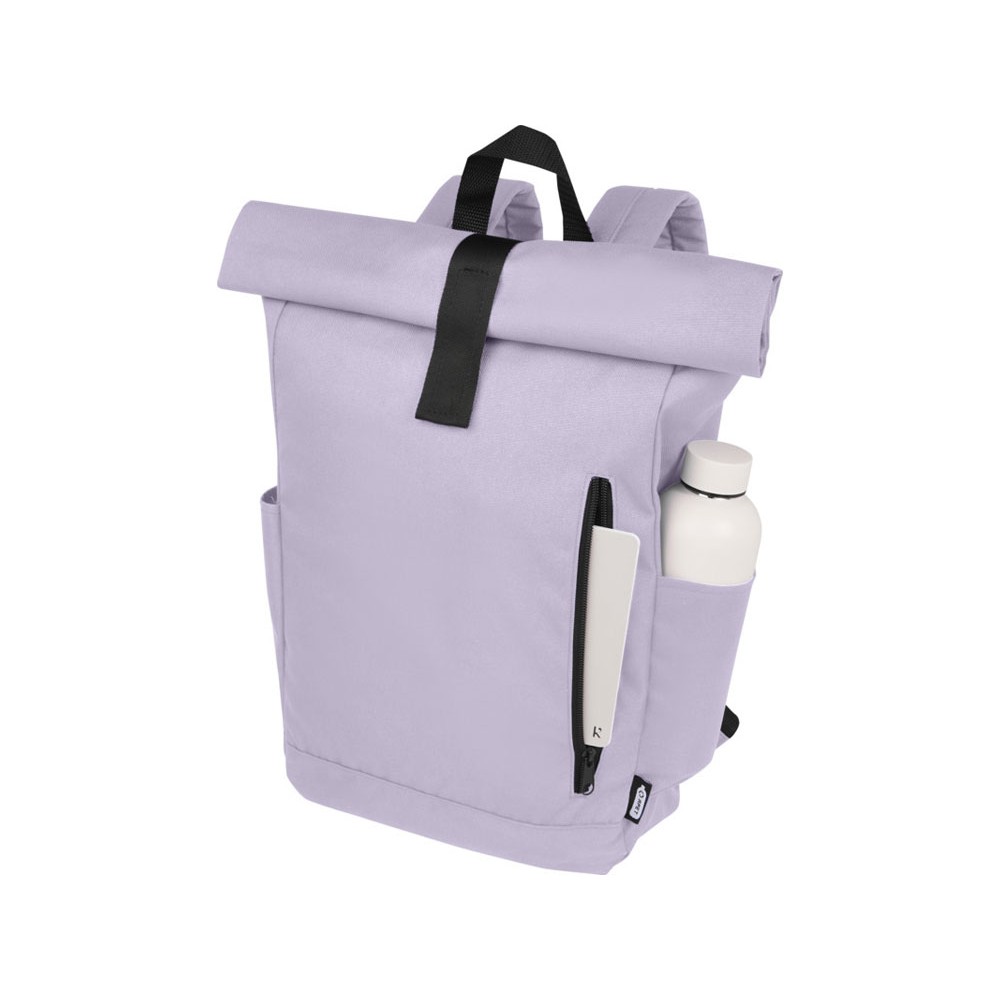 Рюкзак Байрон 15,6" объемом 18 л со скручиваемым верхом, изготовленный из переработанного ПЭТ по стандарту GRS, лиловый