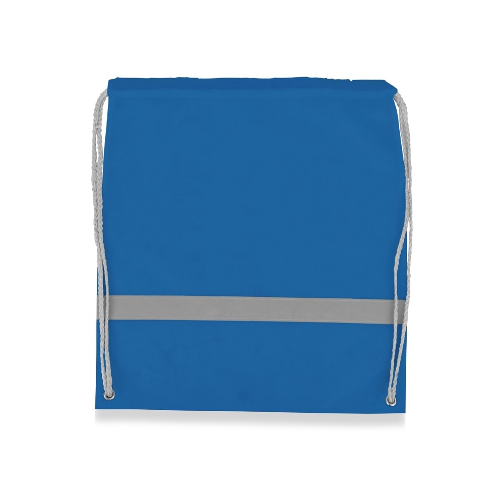 Рюкзак-мешок со светоотражающей полосой и серыми шнурками.