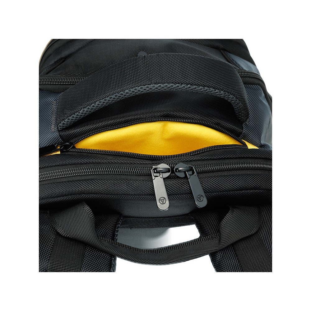 Этот рюкзак создан для тех, кто ценит безупречную организацию пространства. Словно опытный стратег, он предусмотрел всё до мельчайших деталей: от крупных отделений до миниатюрных карманов для мелочей. Изысканный чёрный рюкзак с акцентами солнечного жёлтого цвета подчёркивает ваш безупречный вкус, а продуманная эргономика превращает поиск вещей в удовольствие.