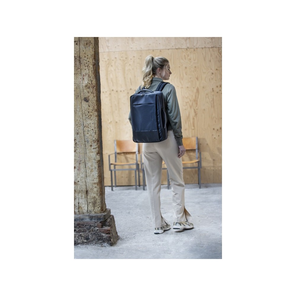 Расширяемый и прочный рюкзак для ноутбука Expedition Pro, сертифицированный GRS, — идеальный выбор для профессионалов, которым постоянно приходится совмещать путешествие и работу. Рюкзак имеет увеличенную вместимость, эквивалентную сумке-тележке для ручной клади, и изготовлен из водоотталкивающего RPET в сочетании с премиальными элементами из ПУ и подкладкой из RPET. Он имеет специальное отделение для 17-дюймового ноутбука и отделение для планшета, расширяемое отделение в стиле тележки для хранения одежды, встроенный герметичный большой карман для туалетных принадлежностей и просторное переднее отделение с множеством организационных карманов внутри и снаружи. Модель имеет мягкие регулируемые лямки, встроенный карман для карточек, петлю для солнцезащитных очков, формованную подкладку из воздушной сетки, а также мягкую ручку, обеспечивающую максимальный комфорт и удобство при переноске. Объем: 35 литр. Не содержит ПВХ. GRS certified recycled polyester.