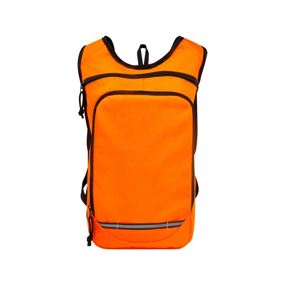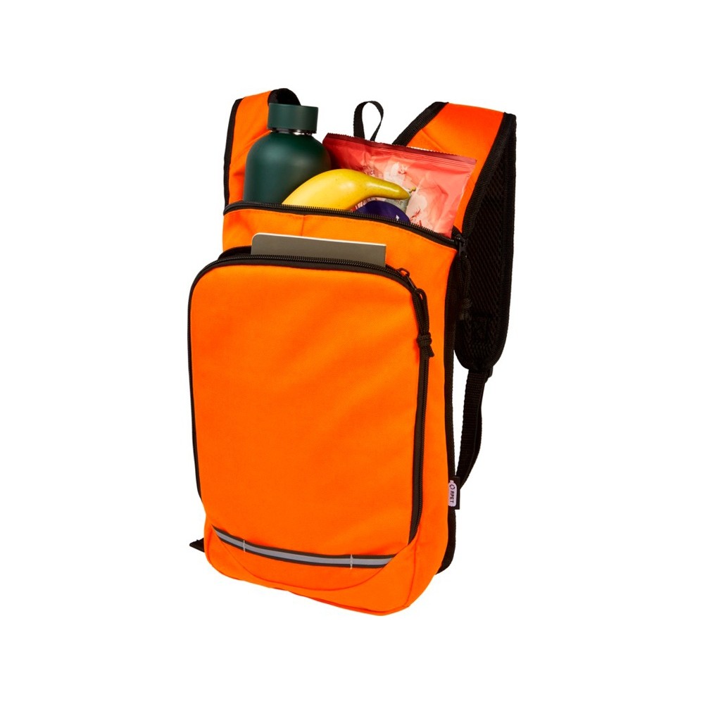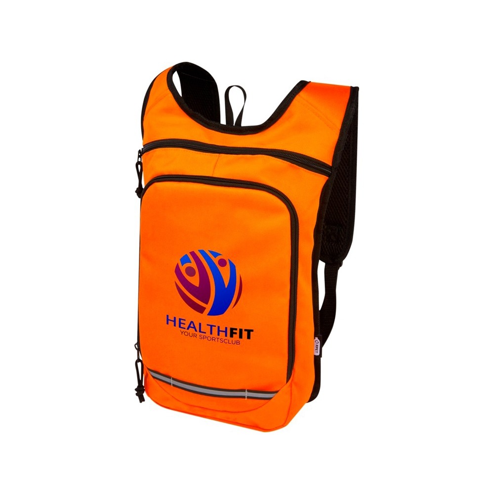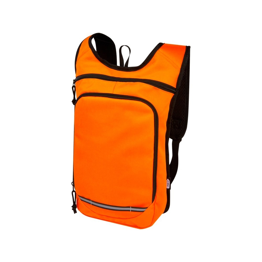 Рюкзак Trails изготовлен из 100% переработанной по стандарту GRS водоотталкивающей ткани и имеет один передний карман на молнии и одно основное отделение на молнии, а также отделение для гидросистемы. Светоотражающие полосы для видимости и сетчатая задняя часть для комфорта при переноске делает его отличным экологичным выбором для активного отдыха.