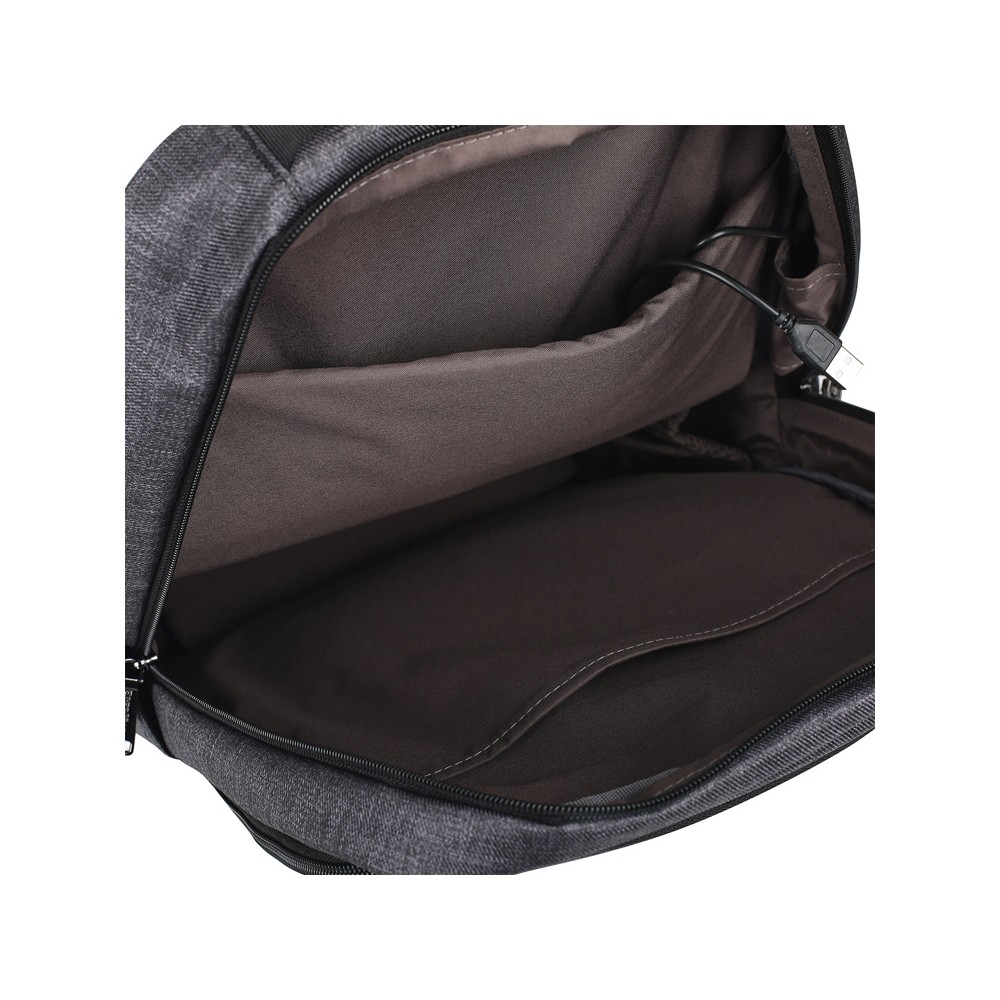 Этот деловой рюкзак снабжен двумя боковыми и одним передним наружным карманами для хранения всего необходимого. Внутри плотный карман для ноутбука. Удобству рюкзака способствуют USB выход, сетчатая спинка и регулируемые плотные лямки.