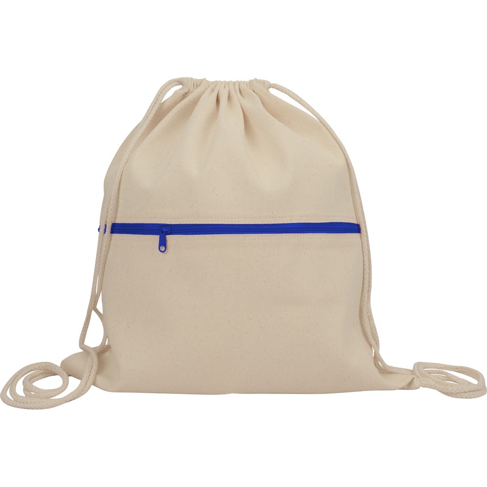 Код товара: 955112 Рюкзак-мешок хлопковый Lark с цветной молнией, натуральный/синий