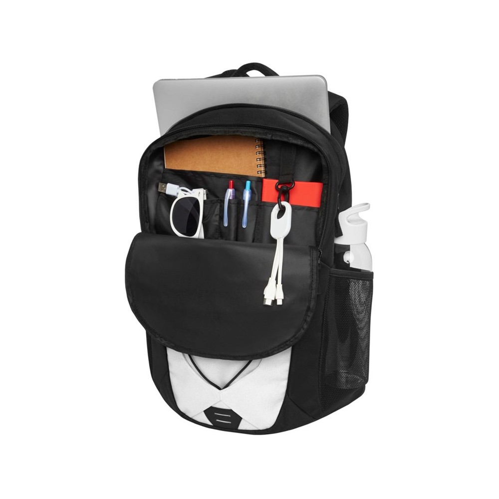 Комбинация походного и ежедневного рюкзака с цветной отделкой и эластичным шнурком со светоотражающими элементами на передней панели. Имеет два внешних сетчатых кармана для хранения бутылок с водой, переднее отделение с несколькими небольшими отделами, крючок для удобного хранения и чехол для планшета размером 12". Рюкзак оснащен укрепленной ручкой и удобной спинкой со смягчающими прокладками. Мягкий чехол внутри главного отделения подходит для ноутбука размером 15,6".