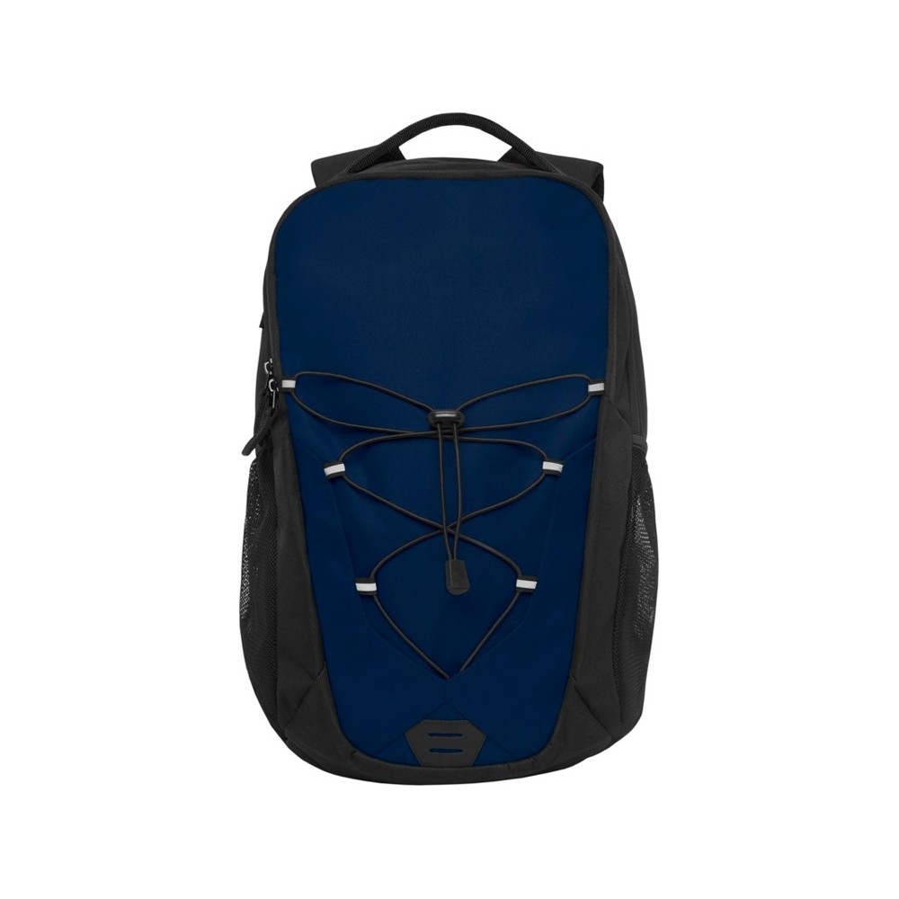 Комбинация походного и ежедневного рюкзака с цветной отделкой и эластичным шнурком со светоотражающими элементами на передней панели. Имеет два внешних сетчатых кармана для хранения бутылок с водой, переднее отделение с несколькими небольшими отделами, крючок для удобного хранения и чехол для планшета размером 12". Рюкзак оснащен укрепленной ручкой и удобной спинкой со смягчающими прокладками. Мягкий чехол внутри главного отделения подходит для ноутбука размером 15,6".