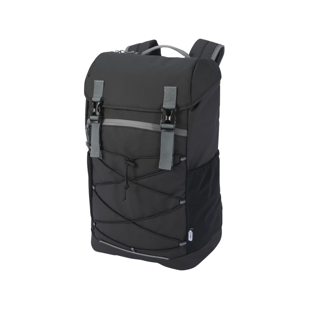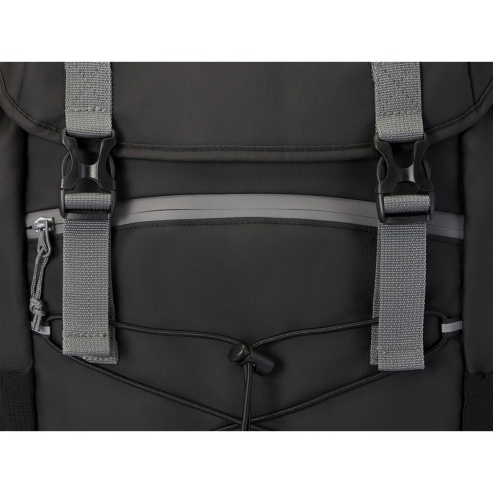 Водонепроницаемый рюкзак для ноутбука, изготовленный из переработанных материалов, сертифицированных согласно стандарту GRS, включая застежки-молнии. Имеет просторное отделение для ноутбука с диагональю экрана 15,6 дюйма со шнуром, а также регулируемые пряжки, чтобы максимально увеличить пространство для хранения под откидной крышкой. Этот рюкзак имеет несколько карманов, в том числе передний карман на молнии с эластичными кулисками для хранения и организации, а также светоотражающую окантовку для видимости. Формованная мягкая спинка и регулируемый нагрудный ремень обеспечивают комфорт даже тогда, когда рюкзак полностью загружен. Из переработанных материалов, сертифицированных по стандарту GRS, изготовлены основная ткань, подкладка, лямки и застежки-молнии. Емкость: 23 литра. Не содержит ПВХ.