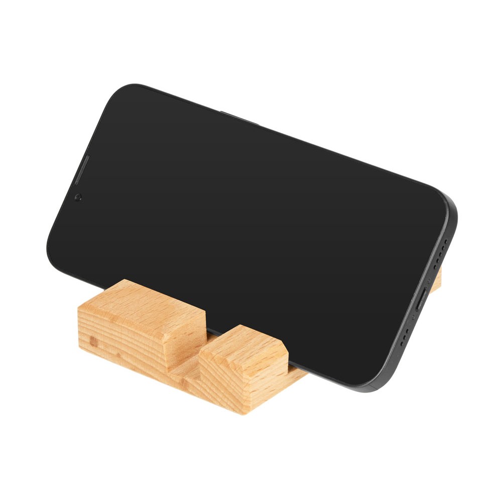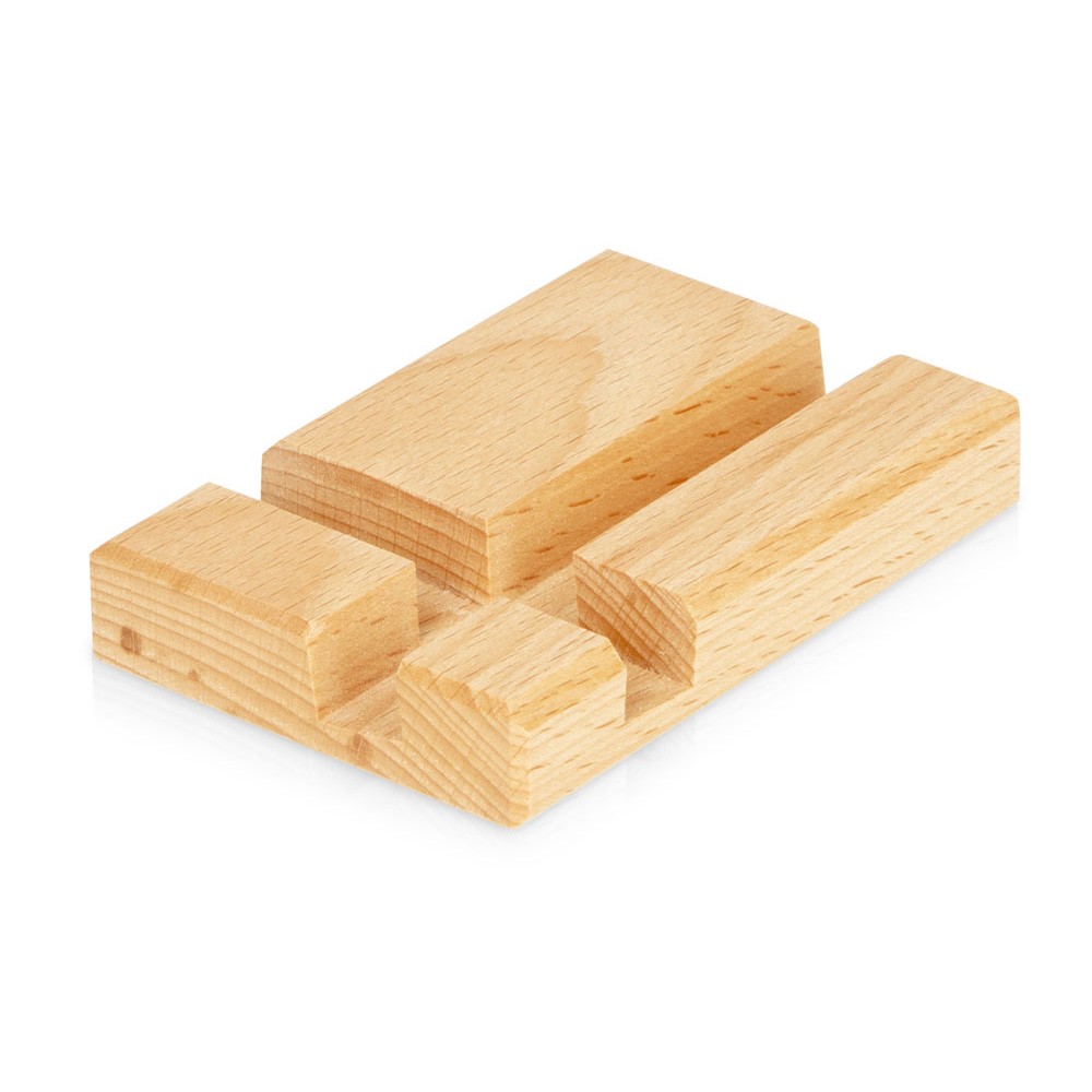 Подставка для смартфона сделана из высококачественного бука, что гарантирует прочность и экологическую безопасность изделия. В ней находятся две различные выемки, способные держать устройства различных размеров как с чехлом, так и без него. Материал  безопасен для использования на любых поверхностях. Легко моется теплой водой.