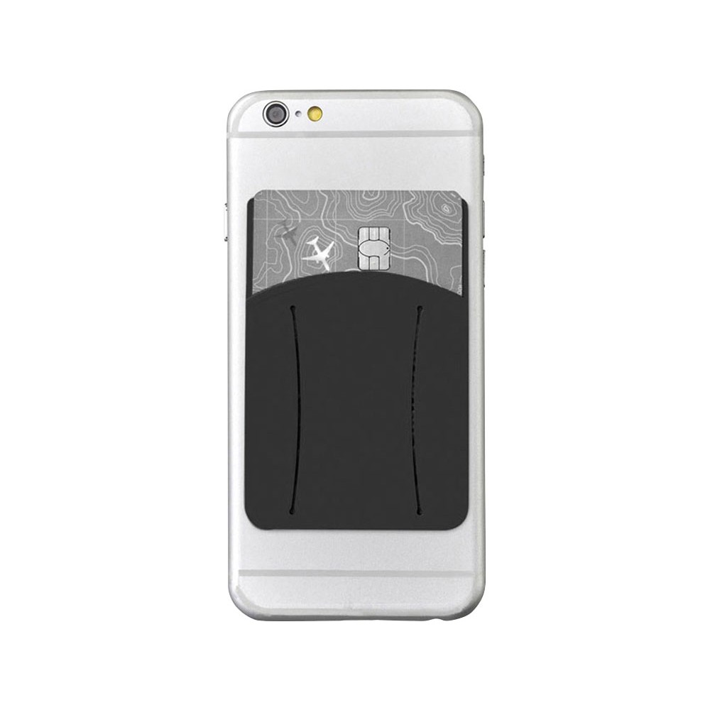 Силиконовый картхолдер для телефона с отверстием для пальца. Картхолдер можно легко прикрепить практически ко всем смартфонам с плоской панелью сзади при помощи липкой ленты. В него можно поместить кредитную карту/ идентификационную карту/ карту-ключ от номера / 5 визиток или банкноты. Отверстие для пальца для более удобного удержания телефона.