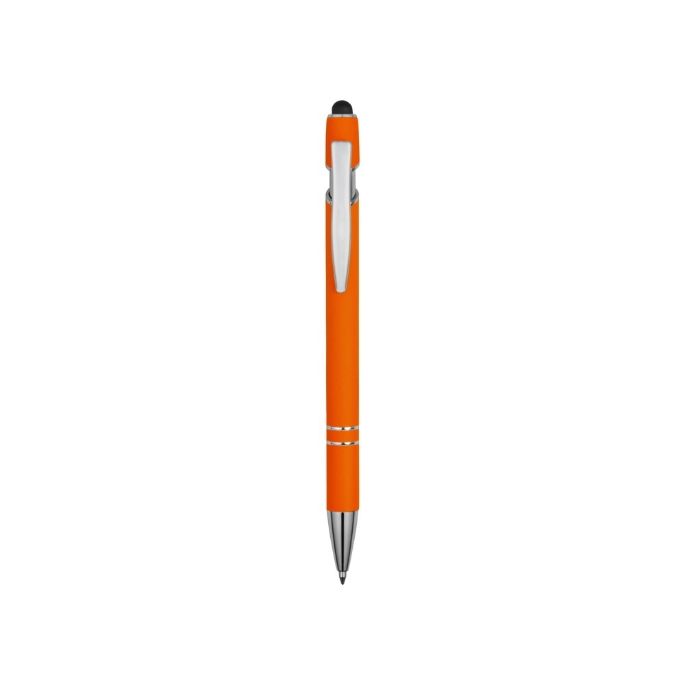 Ручка металлическая soft-touch шариковая со стилусом «Sway», оранжевый/серебристый