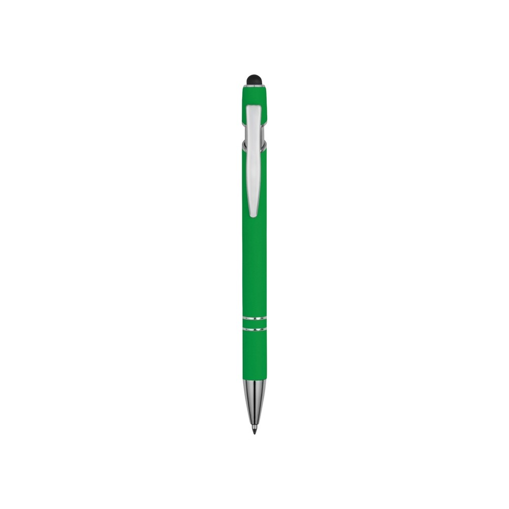 Ручка металлическая soft-touch шариковая со стилусом «Sway», зеленый/серебристый