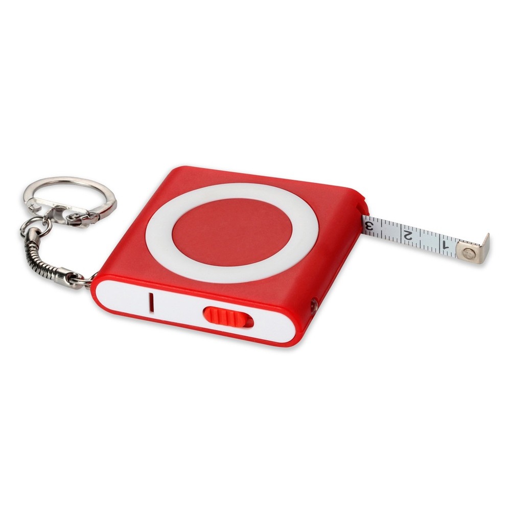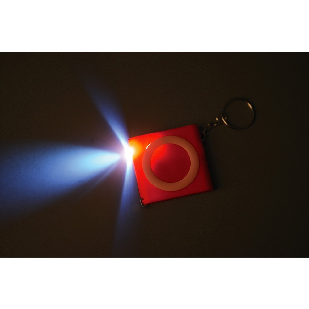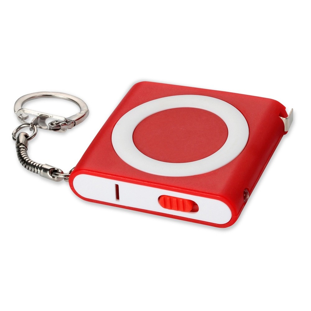 • Брелок-рулетка с фонариком, 1 м., красный/белый