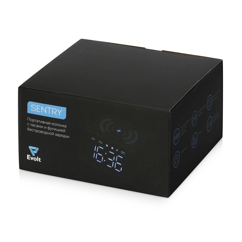 Беспроводная колонка с часами и функцией беспроводной зарядки «Sentry», черный