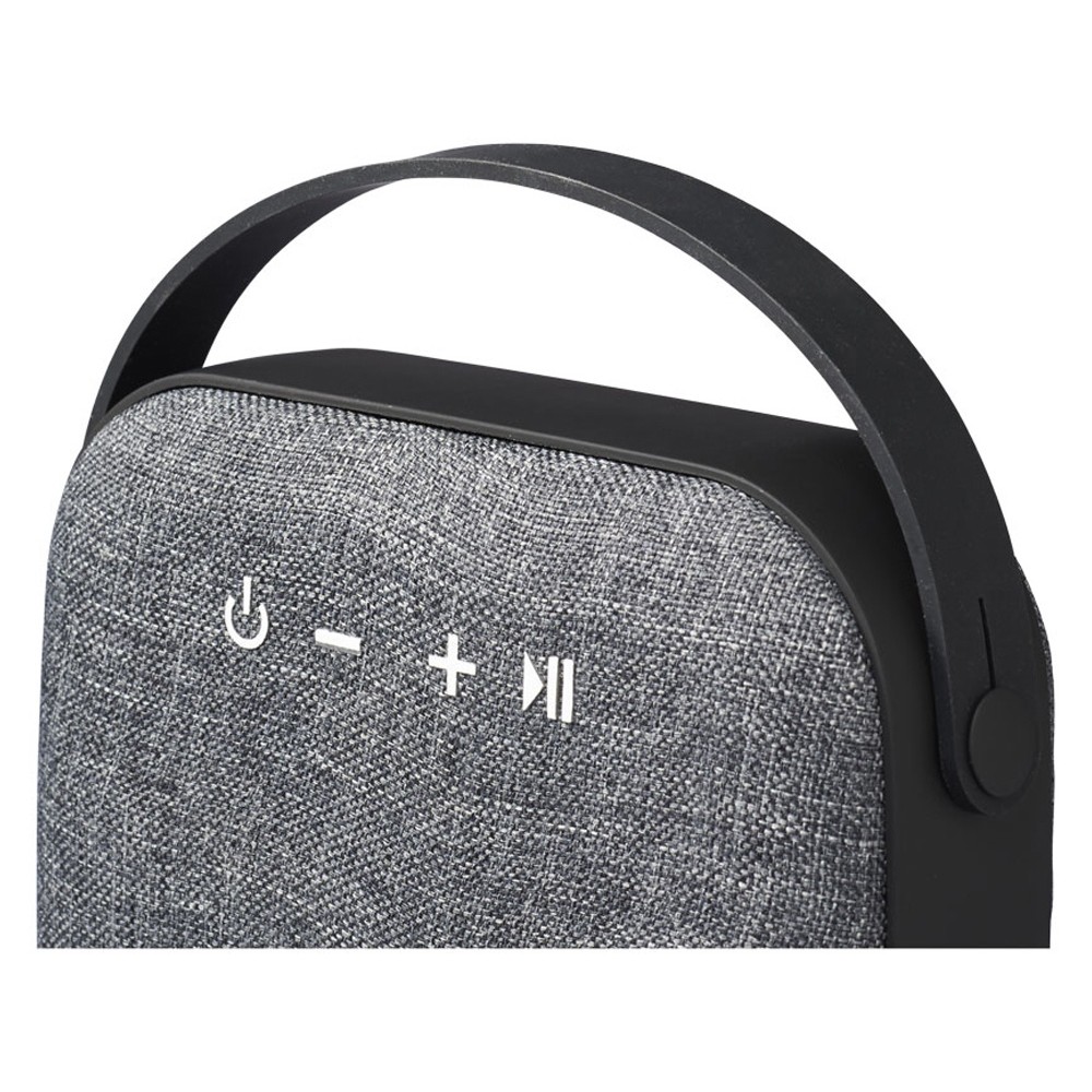 Динамик Bluetooth® с тканым материалом. Динаик Bluetooth® с элементами ткани совмещает отличный звук и трендовый стиль. Корпус динамика обернут в ткань. 3-ваттный динамик обеспечивает отличный звук, в то время как встроенный музыкальный контроллер и микрофон позволяют вам управлять музыкой и проводить конференц-звонки из любого места, не касаясь телефона. Рабочий диапазон Bluetooth® составляет 10 метров. Включает кабель USB - Micro USB и 3,5-мм аудио кабель. Время воспроизведения при максимальной громкости составляет 2 часа, а время зарядки составляет до 2 часов. АБС пластик/ ткань.