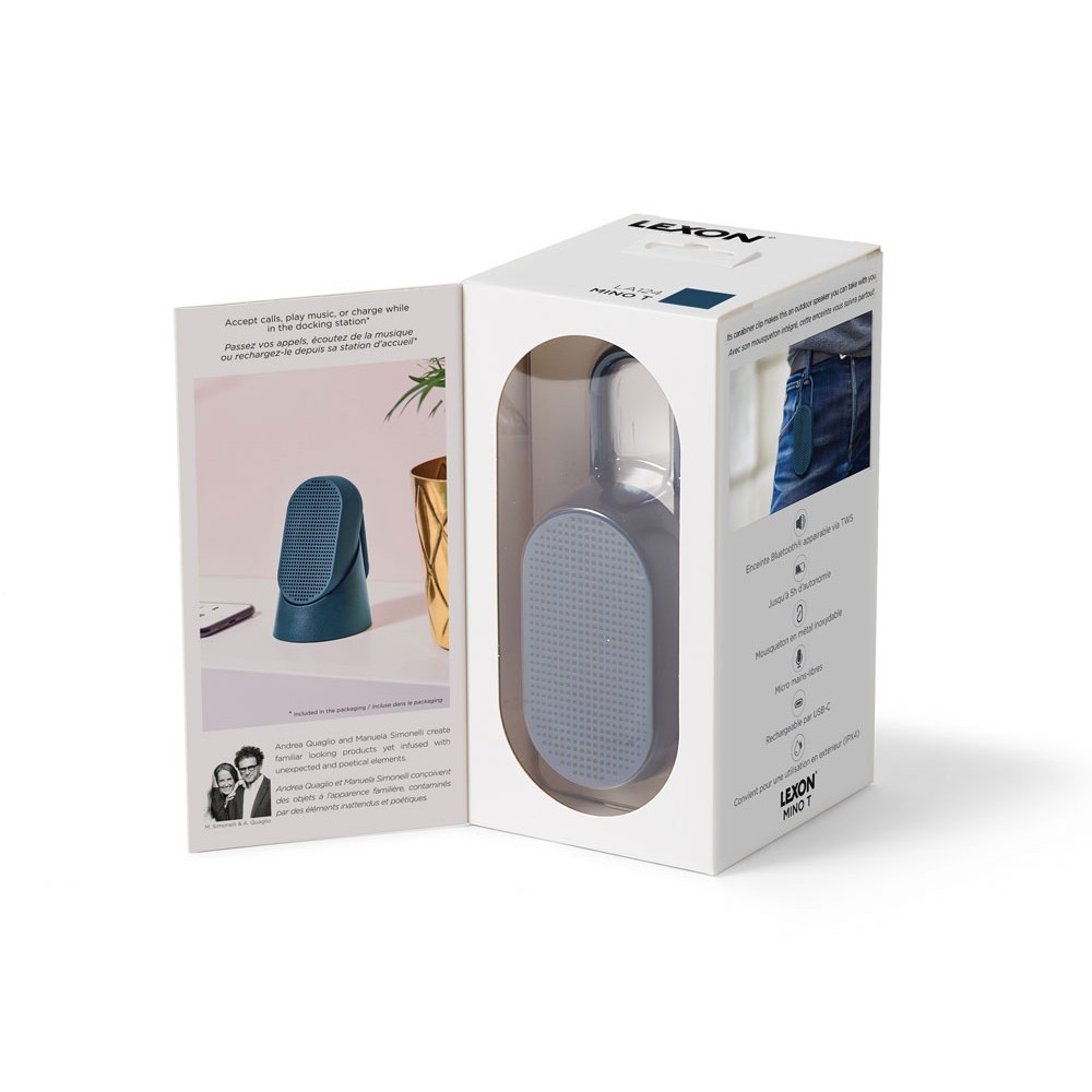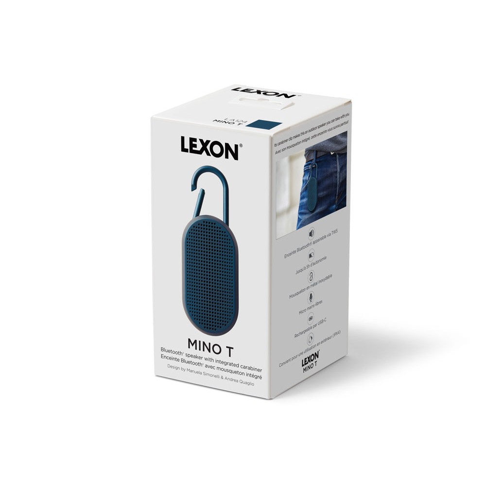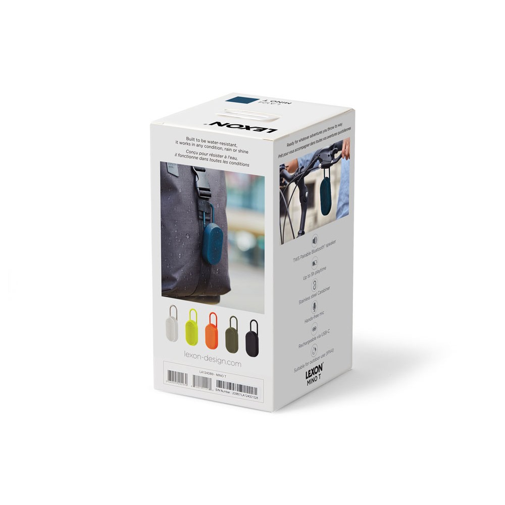 Mino T — это универсальная Bluetooth-колонка, созданная для путешествий. Карабин позволяет легко прикрепить её к сумке или велосипеду. Благодаря элегантному дизайну она гармонично впишется в интерьер, став современным элементом. Оснащённая пассивной басовой системой, Mino T обеспечивает качественное прослушивание, гарантируя сбалансированный и насыщенный звук в дороге. Не беспокойтесь о дожде: сверхпрочное покрытие делает её водонепроницаемой. Наслаждайтесь до 5 часов автономной работы в любых приключениях. Отвечайте на звонки, слушайте музыку или заряжайте колонку через кабель USB-C, установив её на док-станцию.