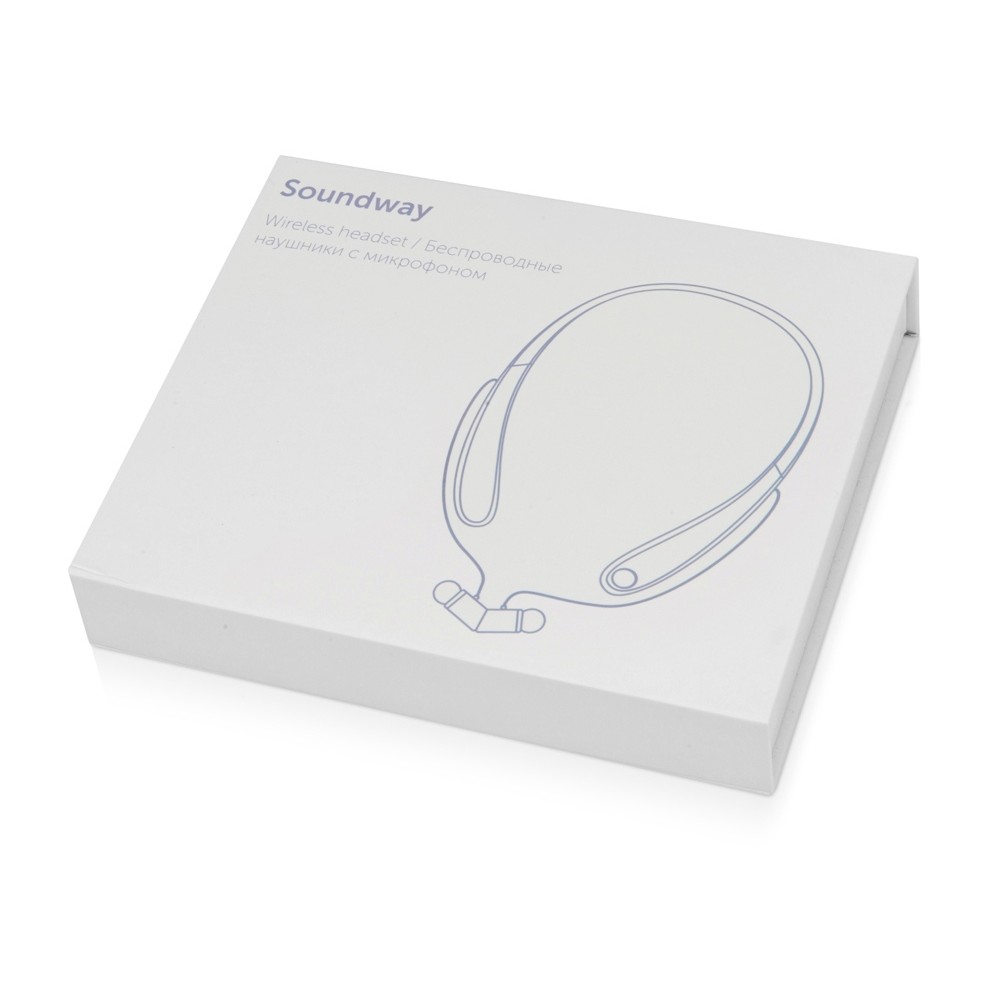 Беспроводная гарнитура "Soundway" может порадовать качественным звучанием на протяжении 8 часов без подзарядки. Гибкая дужка с покрытием soft-touch позволяет избежать любого дискомфорта даже при беге. В дужке находятся микрофон, современный аккумулятор, кнопка управления, защищенный разъем micro USB для зарядки и модуль вибро-оповещения, благодаря которому вы не пропустите ни один звонок. Когда наушники не используются их можно закрепить вокруг шеи при помощи магнитов. Гарнитура "Soundway" поставляется в подарочной упаковке на магнитах, в комплект входят кабель для зарядки, сменные насадки разных размеров и инструкция.