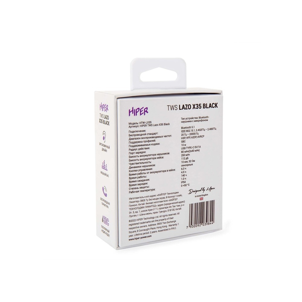Наушники HIPER TWS Lazo X35 Black (HTW-LX35) Bluetooth 5.0 гарнитура, Черный