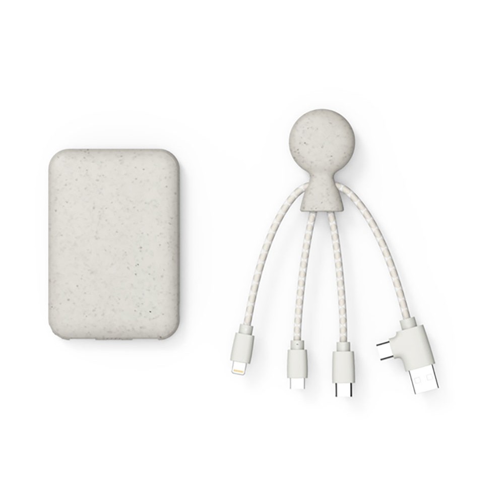 • Портативное зарядное устройство "BioPack" c кабелем "Mr. Bio", 5000 mAh, белый