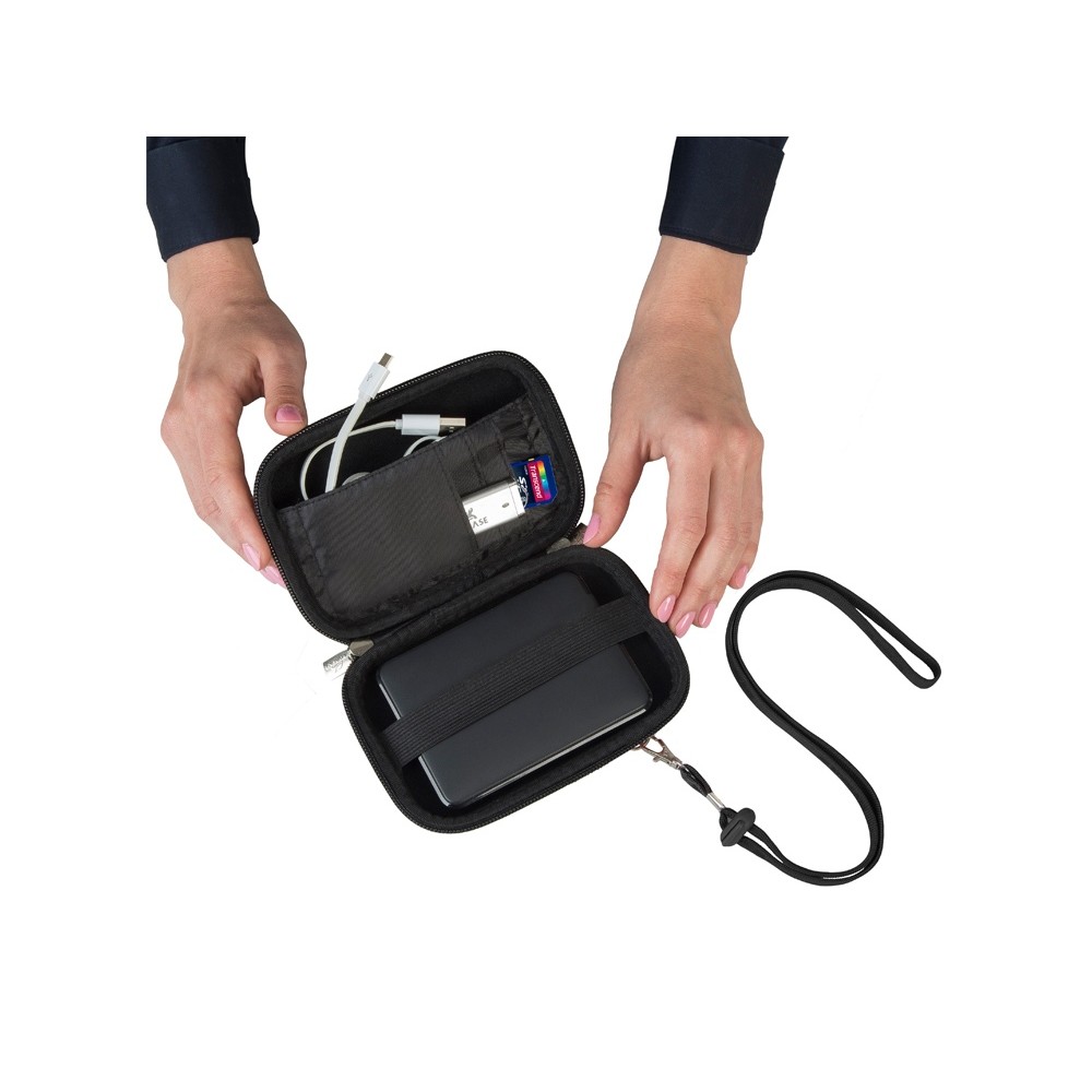 • Устройство надежно крепится внутри чехла специальной фиксирующей лентой, кроме того предусмотрены дополнительные внутренние карманы для кабеля, карт памяти и аксессуаров.
