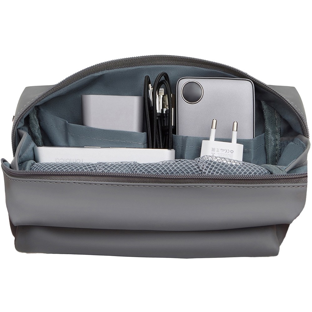 Sofit - это идеальное решение для организации вашей электроники. Стильный органайзер из высококачественной искусственной кожи, чей элегантный серый оттенок и лаконичный дизайн подойдет к любому дизайну сумки, рюкзака и даже интерьера. Множество внутренних карманов и удобный внешний карман позволят аккуратно разместить все: от зарядных устройств и кабелей до пауэрбанков, наушников и даже небольших жестких дисков. Забудьте о спутанных проводах и потерянных мелочах – теперь у каждой детали будет свое место.