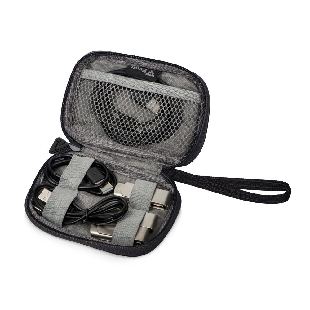 • Сетчатый карман и отсеки на резинке позволяют аккуратно распределить провода так, чтобы они не спутывались и были легкодоступны в любой момент