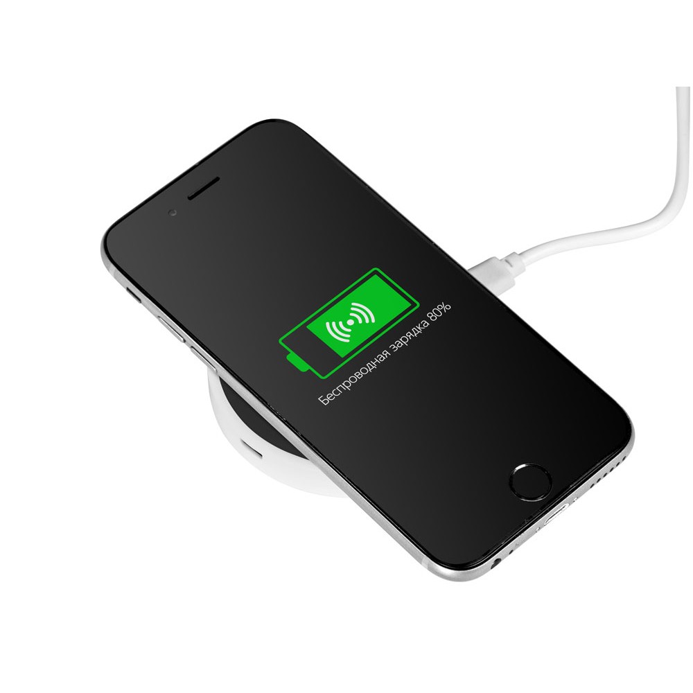 Устройство для беспроводной зарядки позволяет заряжать ваш смартфон без проводов. Поддерживает беспроводную зарядку до 5 Вт. Устройство совместимо с Android смартфонами и iPhone, где есть модуль беспроводной зарядки. Если ваш смартфон не поддерживает функцию беспроводной зарядки, то вам понадобится внешний ресивер или чехол с таким ресивером. В комплекте кабель Micro-USB. Устройство упаковано в белую коробку. Пластик.