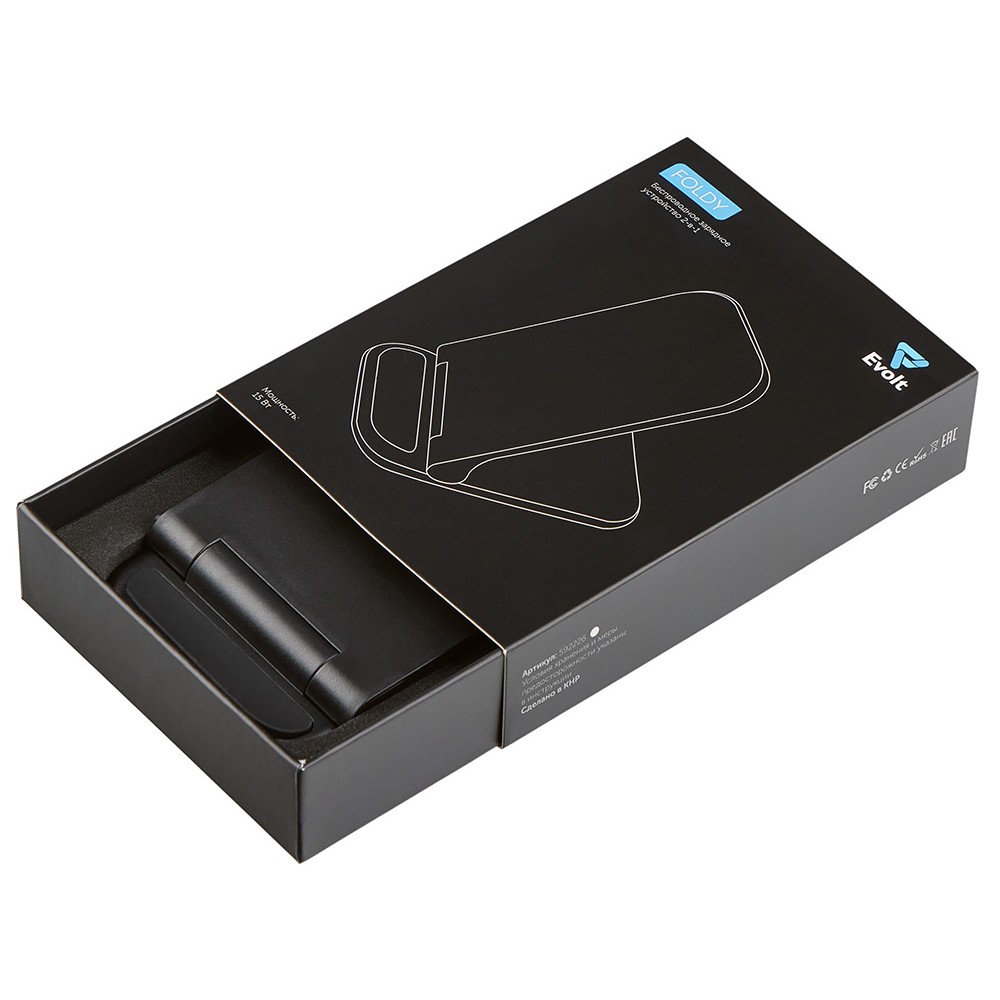 Идеальное решение для современного пользователя 2-в-1 — универсальная беспроводная зарядка-подставка. Два центра зарядки позволяют удобно размещать смартфон как в вертикальном, так и в горизонтальном положении. Благодаря складной конструкции устройство легко помещается в сумку или на полку, не занимая лишнего места на рабочем столе. А если вы хотите превратить зарядку в персонализированный подарок или рекламный сувенир — передняя панель подставки может быть полностью запечатана ярким УФ-изображением любого дизайна. Стильная, функциональная и компактная — ваш телефон всегда будет заряжен и в порядке. Мощность беспроводной зарядки до 15 Вт (при наличии сетевого адаптера 18 Вт и выше). Поставляется в стильной коробке-слайдере.